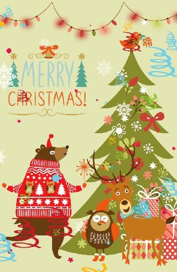 Tres tipos de sonidos festivos. Reproduce al hacer clic en los regalos navideños de pájaros, ardillas y felicitaciones.