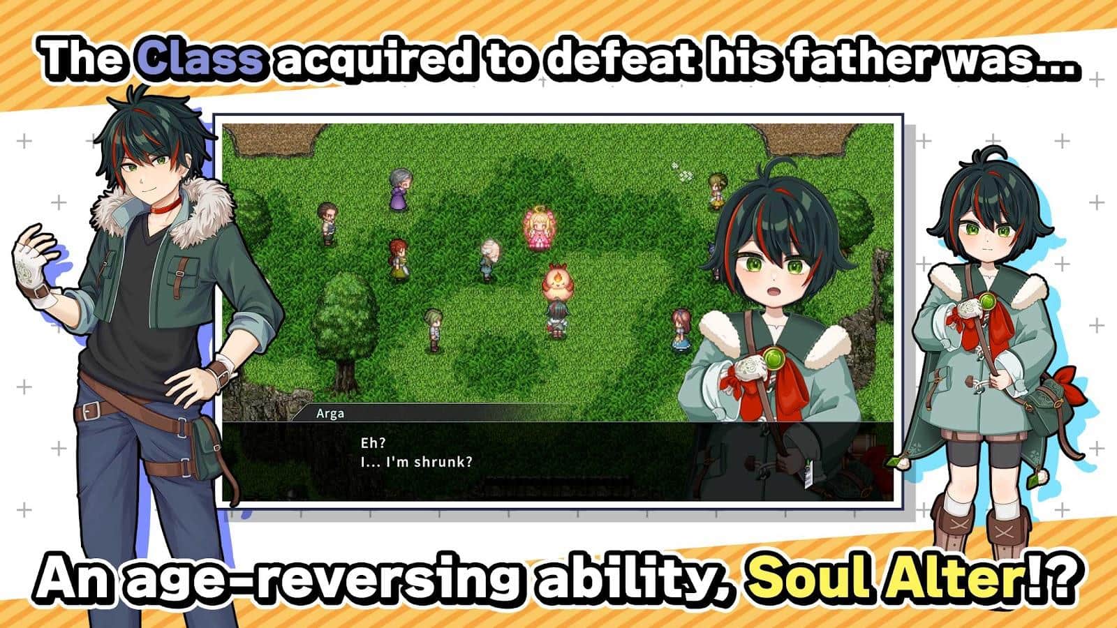 RPG Alter Age - sumérgete en una aventura inolvidable con este juego de rol. Arga, nuestro héroe principal, ha aprendido a ser tanto un adulto como un niño, alternando entre estos estados. A medida que reúnas a tu equipo, encontrarás numerosas pruebas en la gran travesía de tu héroe. ¡Cambia a tus amigos en la batalla del bien contra el mal entre los dos estados de edad, alternando entre ataques y defensa! Utiliza una amplia gama de elementos y construcciones, incluyendo diversos equipos y habilidades, para gestionar las batallas.