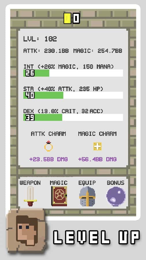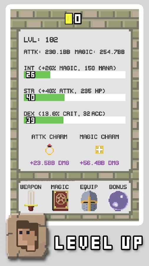 Clicker RPG - Usa tu propio dedo para tocar la pantalla y atacar a cualquiera de los monstruos que se encuentran frente a ti para comenzar y continuar la batalla! Descubre más información sobre el área donde te desarrollarás, y comienza a aprender nuevos hechizos ahora mismo para su uso posterior. El juego ha desarrollado un sistema de prestigio especial, que mejora con tu progreso en la consecución de los resultados necesarios en las batallas. Cuantas más veces toques la pantalla del teléfono, mejor será tu ataque.
