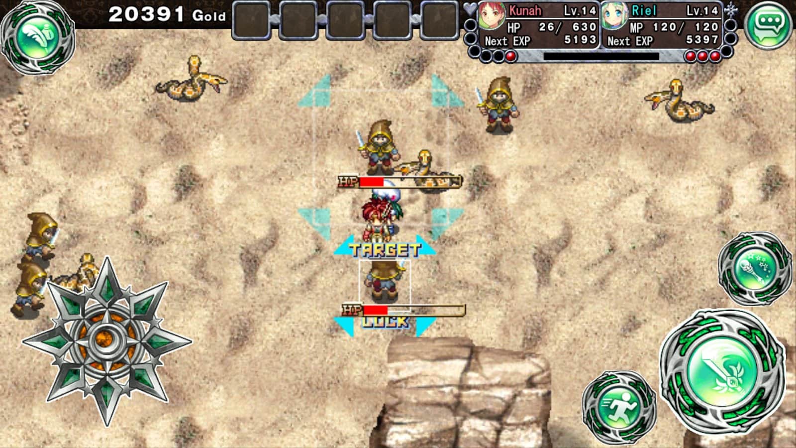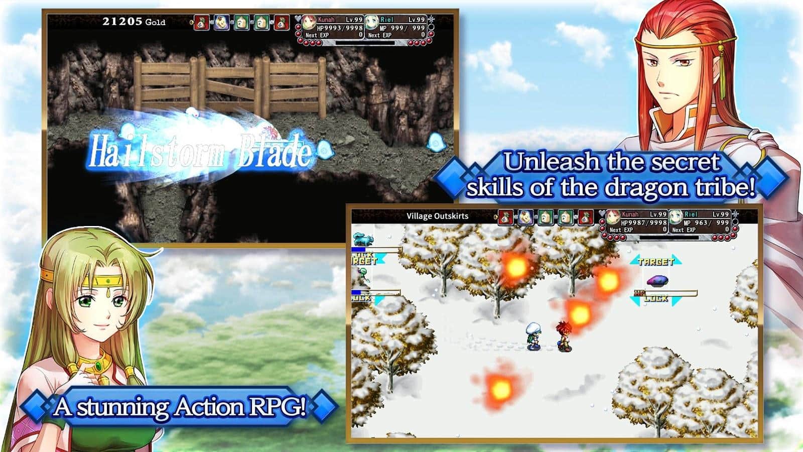 RPG Frane: La Odisea de los Dragones es un juego de acción y aventura para Android donde ayudarás al chico y su amigo a rescatar a la niña desaparecida. Kuna, un chico de la tribu del dragón ígneo, una vez llamó al Dios que gobierna el mundo, Vanatom, y le pidió que encontrara a una niña desaparecida de un clan de ángeles y la trajera de vuelta a Vanet. Junto con su amigo de la infancia, Riehl, emprendes un viaje explorando el vasto mundo bajo las nubes. Lucha contra numerosos enemigos usando armas y magia. Explora las oscuras mazmorras, crea los objetos que desees, mejora tus armas y cocina comidas. Completa numerosas misiones y encuentra en su camino varios personajes.