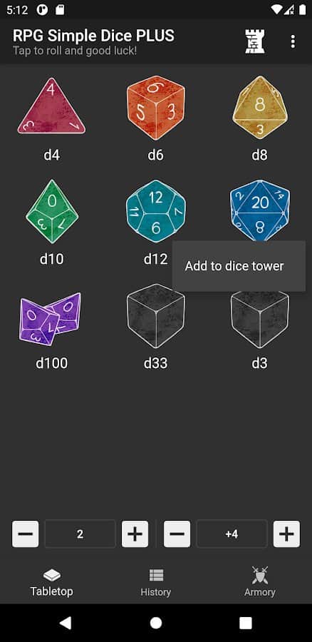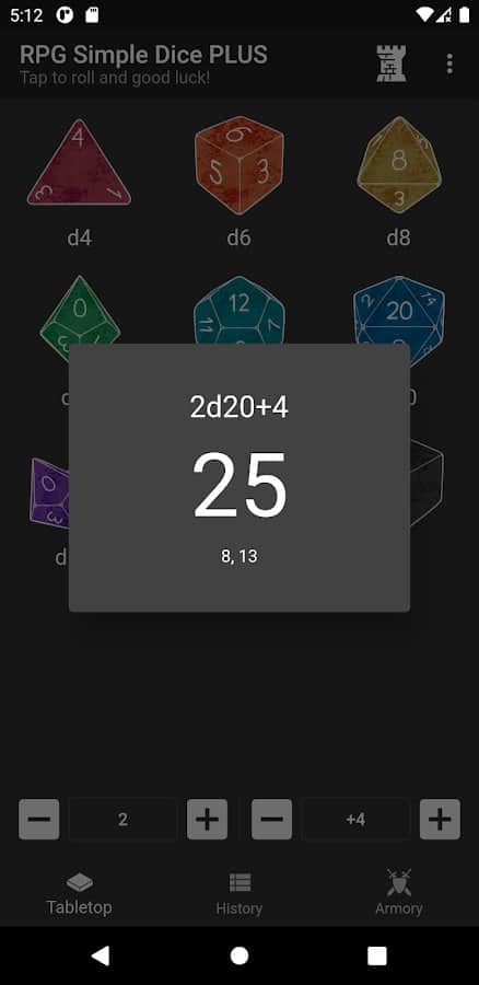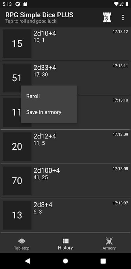 Comentarios a RPG Simple Dice PLUS en Android