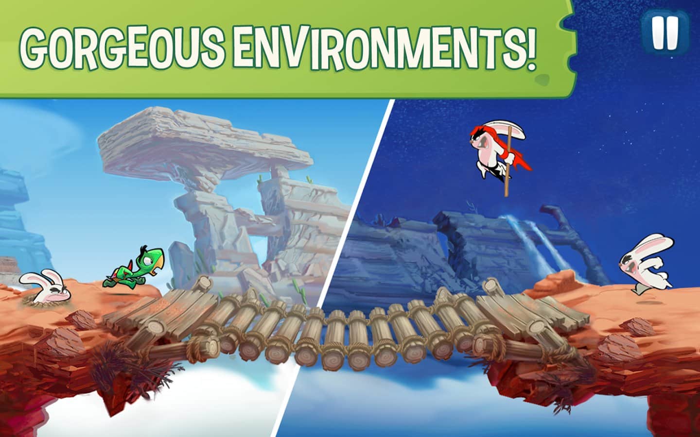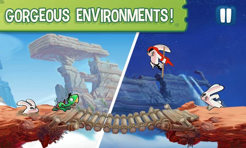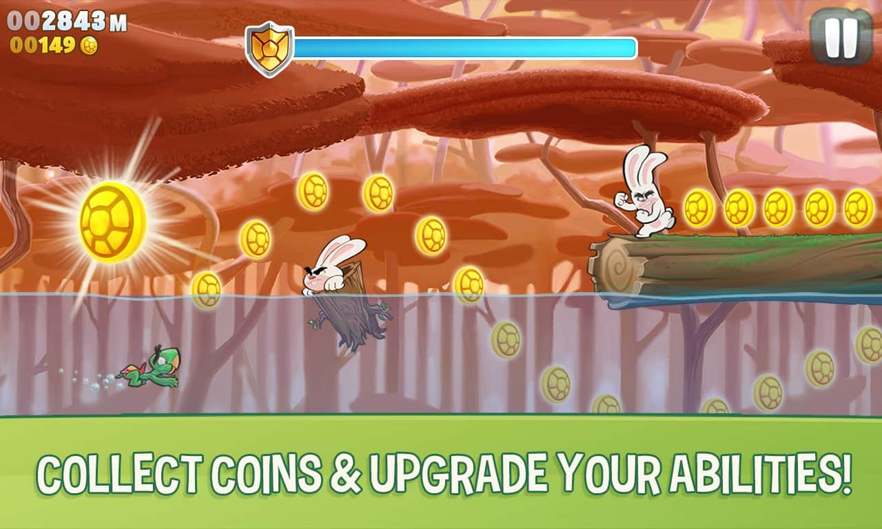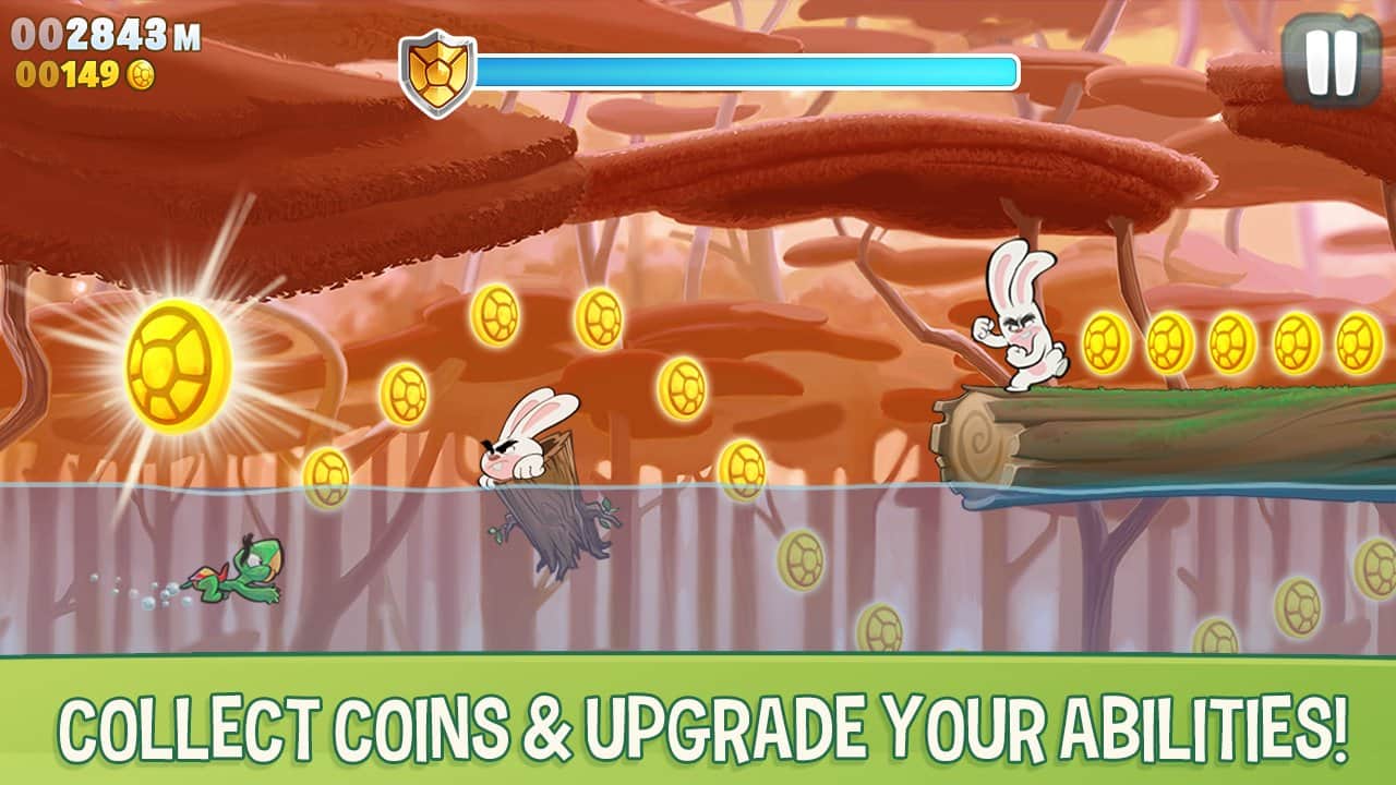Run Sheldon - un juego dinámico para Android en el que debes ayudar a la tortuga a llegar primero a la meta, pero para ello necesitas ser más astuto que los conejos, que también quieren conseguir la victoria. Con el dinero que ganes, podrás comprar diversos objetos que mejorarán las habilidades de tu héroe, comprarle nueva ropa y tu tortuga también lucirá muy estilosa.