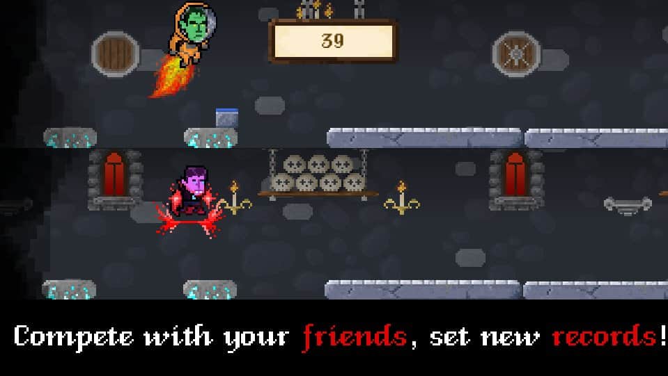 Escapa para encontrarte - un plataforma hardcore bastante inusual, sin embargo, este proyecto no se puede comparar con los habituales arcades minimalistas de esta dirección, lo único que los une es la dificultad, pero las mecánicas de juego son completamente diferentes. A primera vista puede parecer bastante simple, corres, saltas y recoges premios. Pero vale la pena jugar y se hace evidente que no todo es tan simple, tienes que controlar dos personajes al mismo tiempo, y tendrás que hacerlo de manera sincrónica, por lo que el proceso requerirá no solo atención, sino también movimientos precisos. Además, el juego está lleno de todo tipo de contenido digital, montañas de objetos, una enorme selección de personajes y trajes para ellos, más de 50 logros diferentes, cientos de niveles, gráficos pixelados detallados, soporte para el idioma ruso.