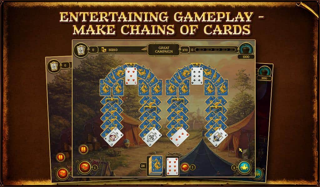 Solitario de caballeros 2 - un gran solitario con el ambiente de la Edad Media y el valor caballeresco. El título del caballero más glorioso lo obtendrá el caballero más digno, fuerte y valeroso. Derrota al dragón que protege todo el oro del antiguo y poderoso Reino. Tienes que pasar por 12 increíbles ubicaciones y completar 120 niveles y luego impactar el corazón del dragón. No olvides que sigue siendo un solitario). A lo largo del juego tendrás agradable música relajante.
