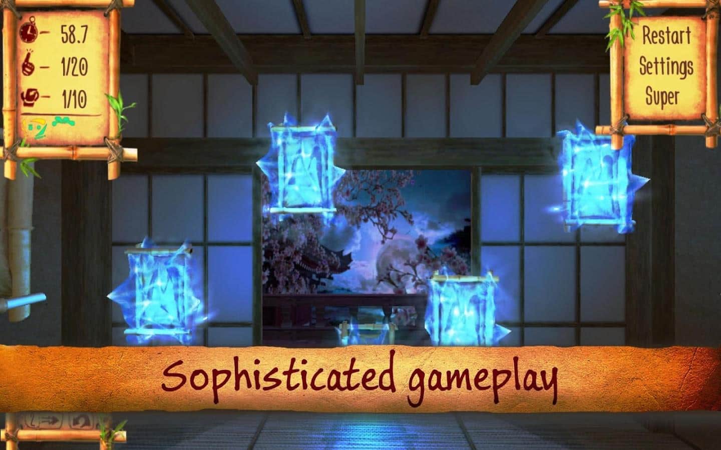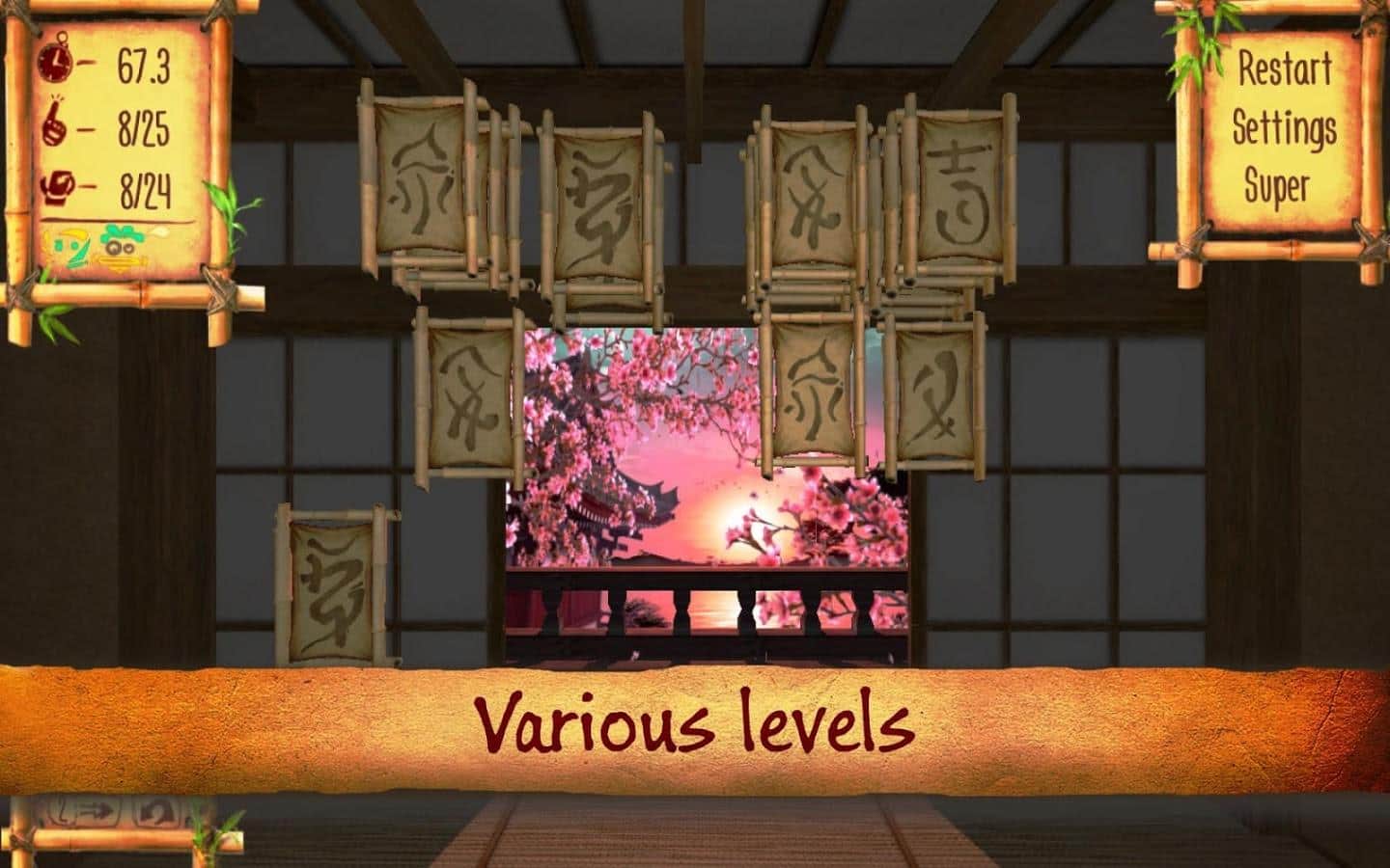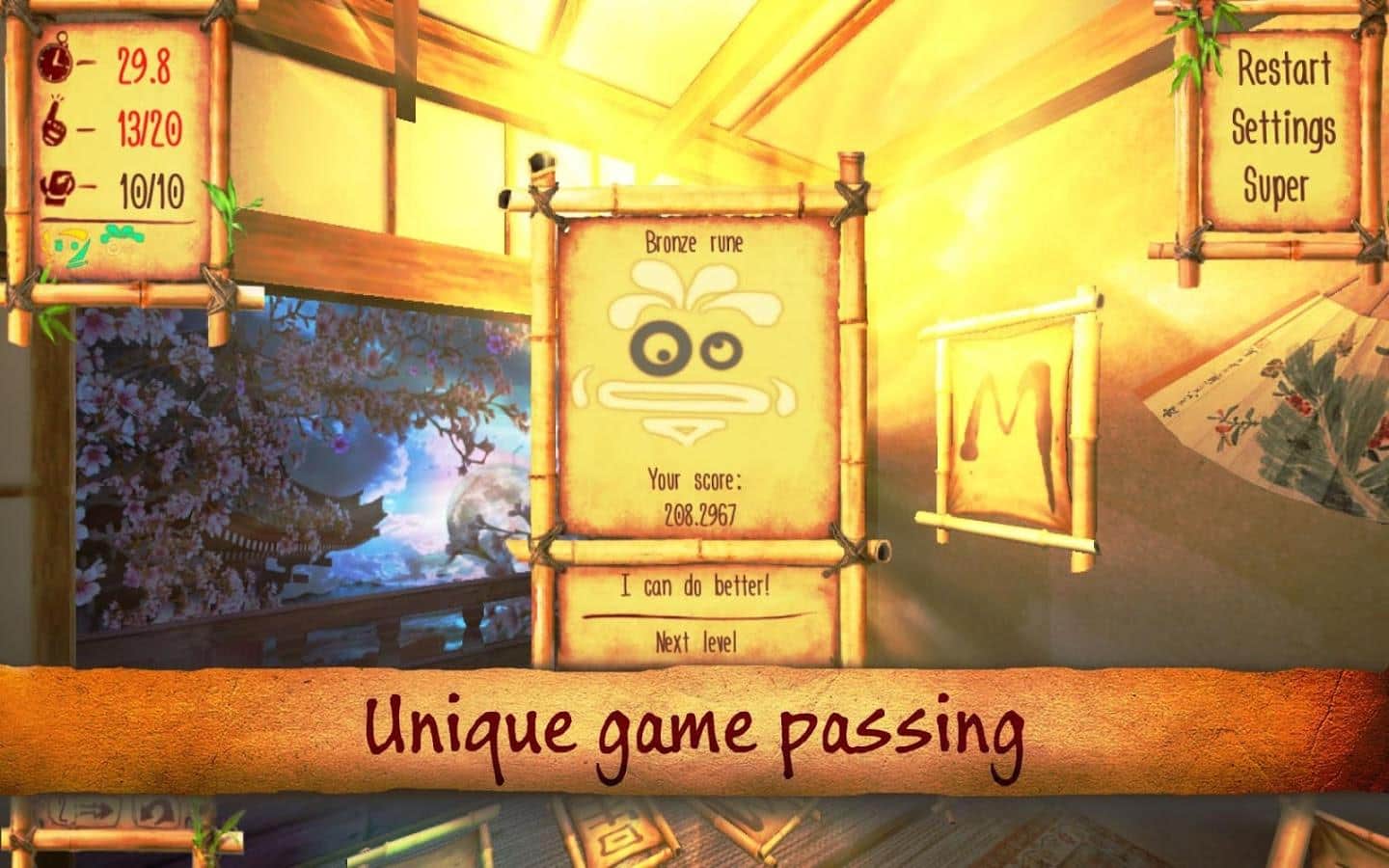 Samurái Puzzletto - un rompecabezas en 3D para Android, en el que ayudarás al samurái Puzzletto a encontrar las runas necesarias. Este juego te transportará a la antigua Japón, donde los samuráis reinan y uno de ellos tiene el gran honor de descifrar las antiguas runas. Ayúdalo a hacerlo y no caigas en la deshonra. Gira las antiguas runas, encuentra las iguales y quítalas del campo. Este juego te ayudará a entrenar tu memoria y atención. Muévete por dos diferentes ubicaciones en 3D y disfruta de los brillantes efectos especiales que este juego te ofrecerá. Mejora tu memoria y logra mejores resultados, convirtiéndote en el líder de este juego.
