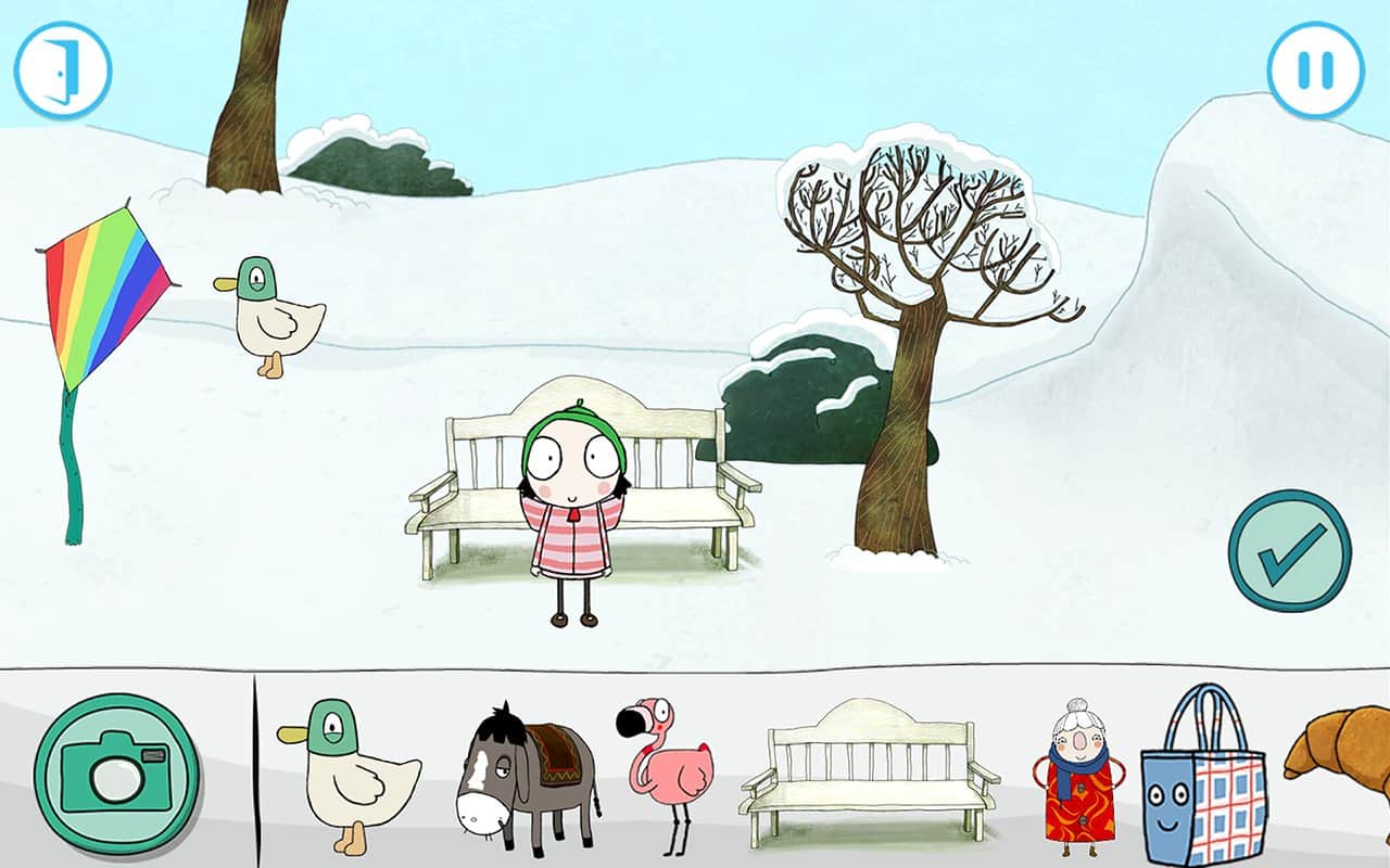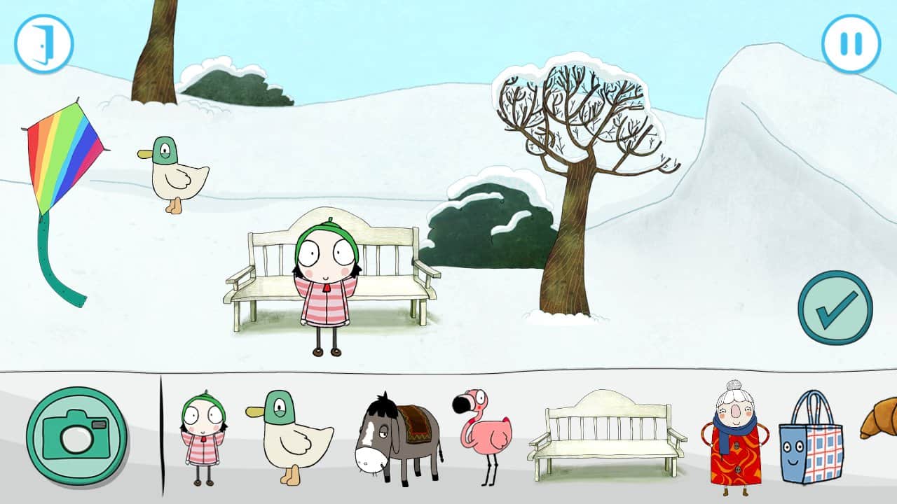 Sarah & Duck - Un día en el parque es un interesante juego de rompecabezas animado para niños en edad preescolar. En este juego vas al parque con Sarah y el pato, donde tienes que realizar varias tareas, como jugar al escondite con los patos, decorar y volar una cometa, alimentar al hambriento, ayudar a la anciana a evitar todos los charcos, así como participar en la construcción de su propio parque. Este es un juego interesante que durante mucho tiempo atraerá la atención de tu hijo, donde podrá interactuar con 6 personajes animados, desarrollar su imaginación y resolver varios rompecabezas.