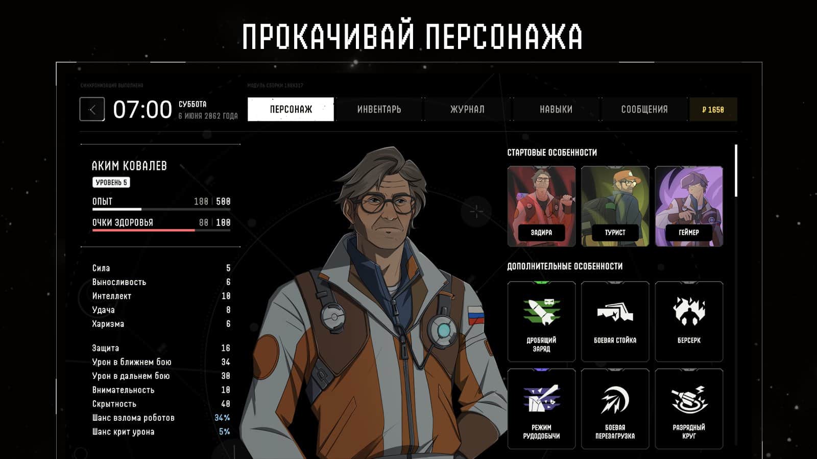 Saturno: RPG táctico - Sumérgete en un emocionante RPG por turnos ambientado en una realidad alterna de la Rusia futura en el año 2062. La exploración del espacio se ve repentinamente amenazada por una señal misteriosa que se propaga a través de los hilos del éter. Tú, un talentoso científico llamado Akim Kovalev, viajarás a la Tierra y a las lunas de Saturno para descubrir el misterio, salvar a la humanidad y detener la inteligencia artificial que se ha levantado contra sus creadores. Tienes solo tres días para llevar a cabo esta misión. En este RPG de ciencia ficción con un sistema de combate bien pensado, la estrategia juega un papel clave. Planifica tus acciones, experimenta con armas cuerpo a cuerpo y de largo alcance, desarrolla tu personaje y lucha contra enemigos para proteger la civilización.