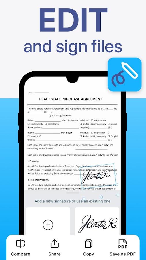 Escáner de Documentos a PDF - TapScanner - Escanea rápidamente el documento necesario o cualquier otra cosa para moverlo a un archivo PDF en tu propio teléfono. Puedes usar esta aplicación no solo para tus propios fines, sino también como firma de un contrato entre personas, utilizando una firma electrónica y así sucesivamente. Después de escanear, puedes editar fácilmente el archivo resultante, cambiar su nombre, guardarlo en una carpeta y almacenarlo allí hasta que necesites eliminarlo completamente. También puedes exportar un archivo PDF a otros formatos, por ejemplo JPG, TXT.
