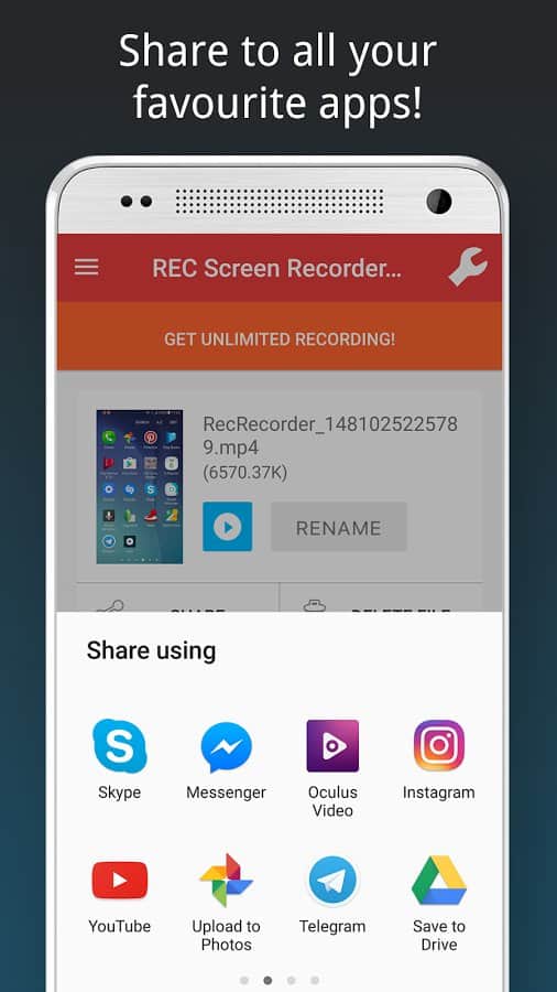 REC HD Screen Recorder es una aplicación que te permitirá grabar videos de excelente calidad directamente desde tu teléfono o tableta. Para lograr una buena calidad de grabación de pantalla en cualquier dispositivo, SCR Screen Recorder utiliza aceleración de hardware para la codificación de video. Esta aplicación no solo se enorgullece de una grabación excelente y de calidad, sino también de la compatibilidad con Tegra, incluyendo Nexus 7. Además, para rastrear errores y realizar análisis, la aplicación rastrea y recopila estadísticas anónimas. Este software utiliza el código no modificado de FFmpeg 1.2 licenciado bajo LGPL.