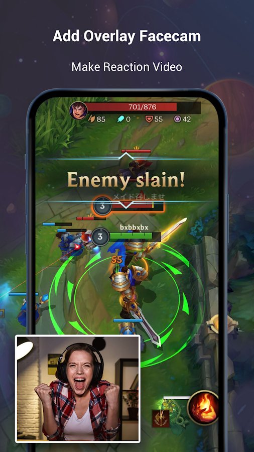 El potente editor de video V Recorder te permite configurar filtros en el video, añadir música, texto, realizar recortes y también grabar el proceso del juego desde la pantalla del dispositivo.