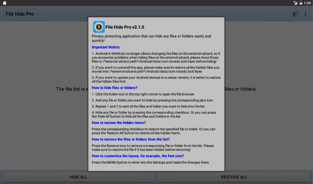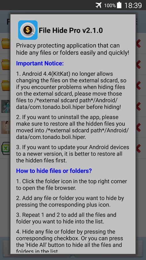 Secret Hider Pro es para aquellos que tienen un complejo de persecución, ¡esta aplicación encajará perfectamente! Es capaz de ocultar tus archivos y documentos personales bajo una clave, y no tendrán acceso hasta que ingreses la clave. De hecho, la aplicación es muy simple, pero no requiere ningún movimiento especial de los archivos, simplemente oculta todo lo que necesitas. No solo se pueden ocultar archivos, sino también aplicaciones, así que si instalas un espía en el teléfono inteligente de alguien y encima de eso esta aplicación, entonces la persona nunca la encontrará.