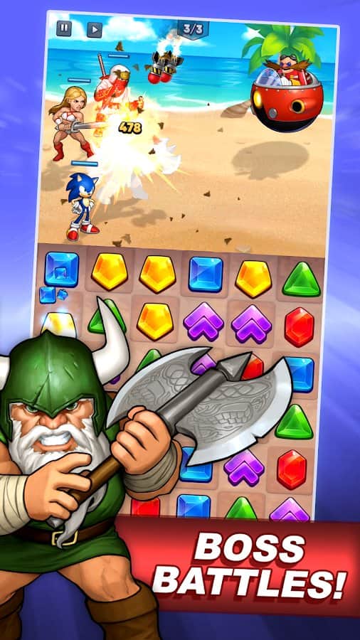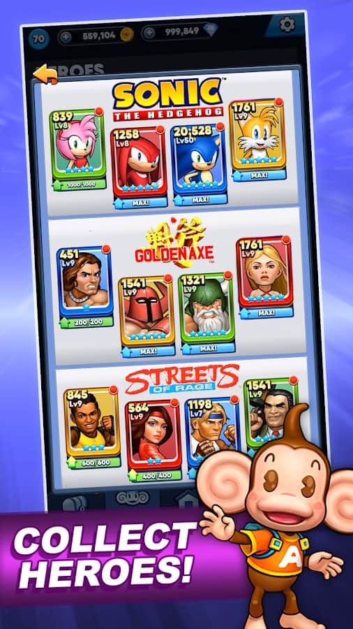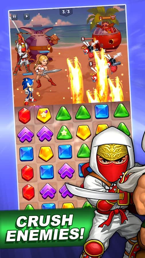 SEGA Heroes es un nuevo RPG del Estudio SEGA, cuya jugabilidad combina elementos de rompecabezas arcade de la serie de tres en raya y las mecánicas de acción de rol. En este proyecto, reunirás bajo tu mando a todos los personajes famosos de los juegos lanzados por este desarrollador y luego participarás en emocionantes batallas. Por supuesto, no faltará un sistema de desarrollo y mejora para que puedas otorgar a los personajes familiares nuevas habilidades y capacidades, y luego ponerlas a prueba en combate.