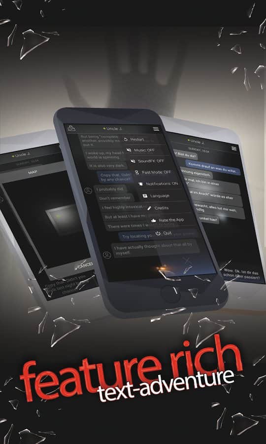 Ganando cada vez más popularidad, varias versiones de juegos de palabras, incluyendo aventura y búsqueda. Y esto no es sorprendente porque las características de los dispositivos móviles han aumentado significativamente la experiencia de juego, siendo el principal el efecto de realismo y presencia. SEVEN7H: Aventura de Halloween - un juego de texto clásico presentado como una historia interactiva, con una trama mística y jugabilidad de aventura. En el juego debes salvar a tu tío, pero ni siquiera sabes si está muerto o no, sin embargo, recibes regularmente mensajes de él. Para resolver este misterio tienes que. SEVEN7H: Proyecto de aventura de Halloween que atraerá a todos los aficionados del género de búsquedas textuales, y simplemente a los fanáticos de un juego reflexivo y pausado.