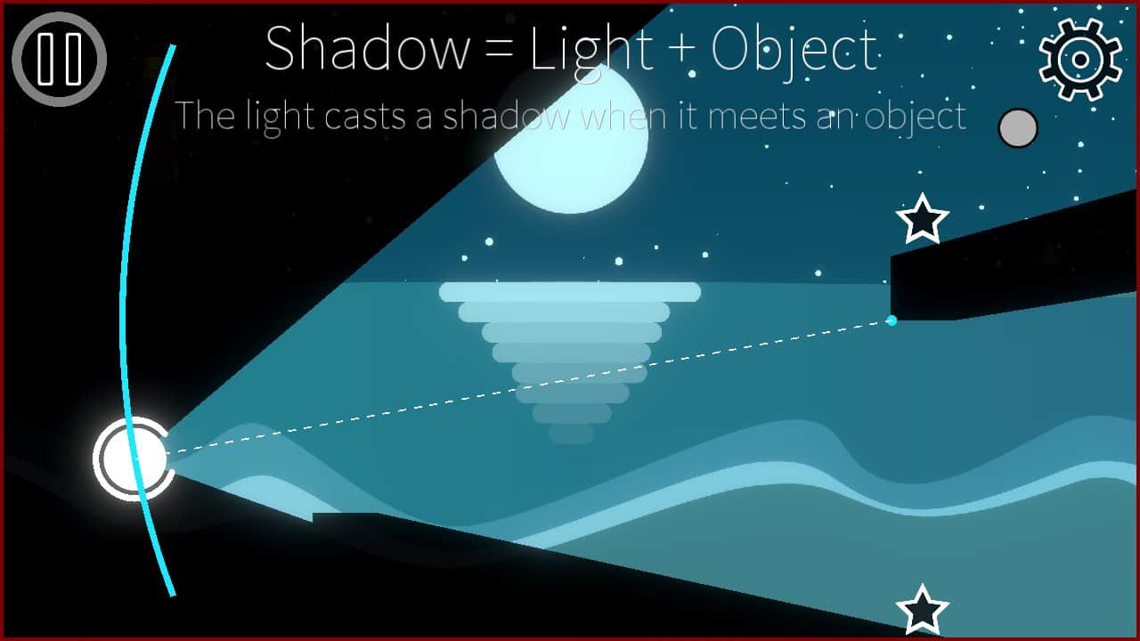 Shadow Play – un adictivo juego de rompecabezas para Android basado en las leyes de la física. En este juego controlarás el movimiento de la bola a través de diversas ubicaciones, donde tu tarea principal es recoger todas las estrellas en el nivel. La bola solo se moverá en la trayectoria dada de la luz e interactuará con diferentes objetos para ayudarle a recoger todas las estrellas. Hay 5 temas únicos, 100 etapas únicas y 4 objetos.