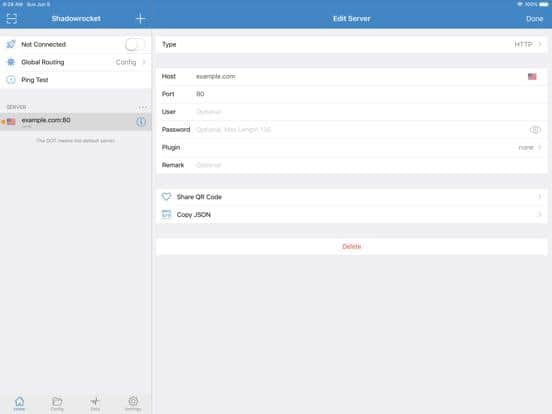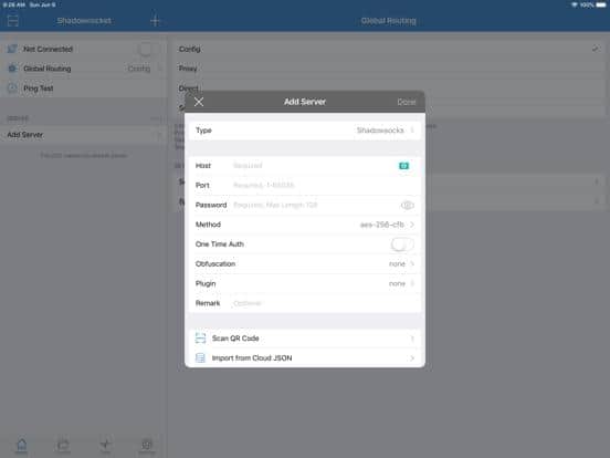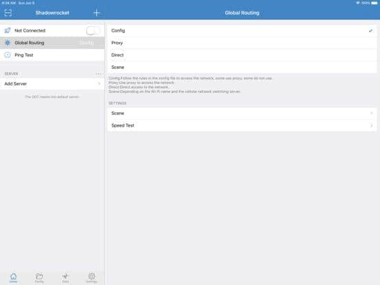 Shadowrocket - cliente proxy protegido en iOS con muchos métodos de encriptación que te ayudarán a proteger tu tráfico y eludir el bloqueo. Captura todo el tráfico HTTP/HTTPS/TCP de cualquier aplicación en tu dispositivo y redirígelo al servidor proxy. Configura reglas usando mapeo de dominio, sufijo de dominio, palabras clave, dominio, rango de direcciones IP, CIDR y/o búsqueda GeoIP. Bloquea anuncios en reglas de dominio y de usuario. Hay soporte completo para IPv6 y redes móviles.