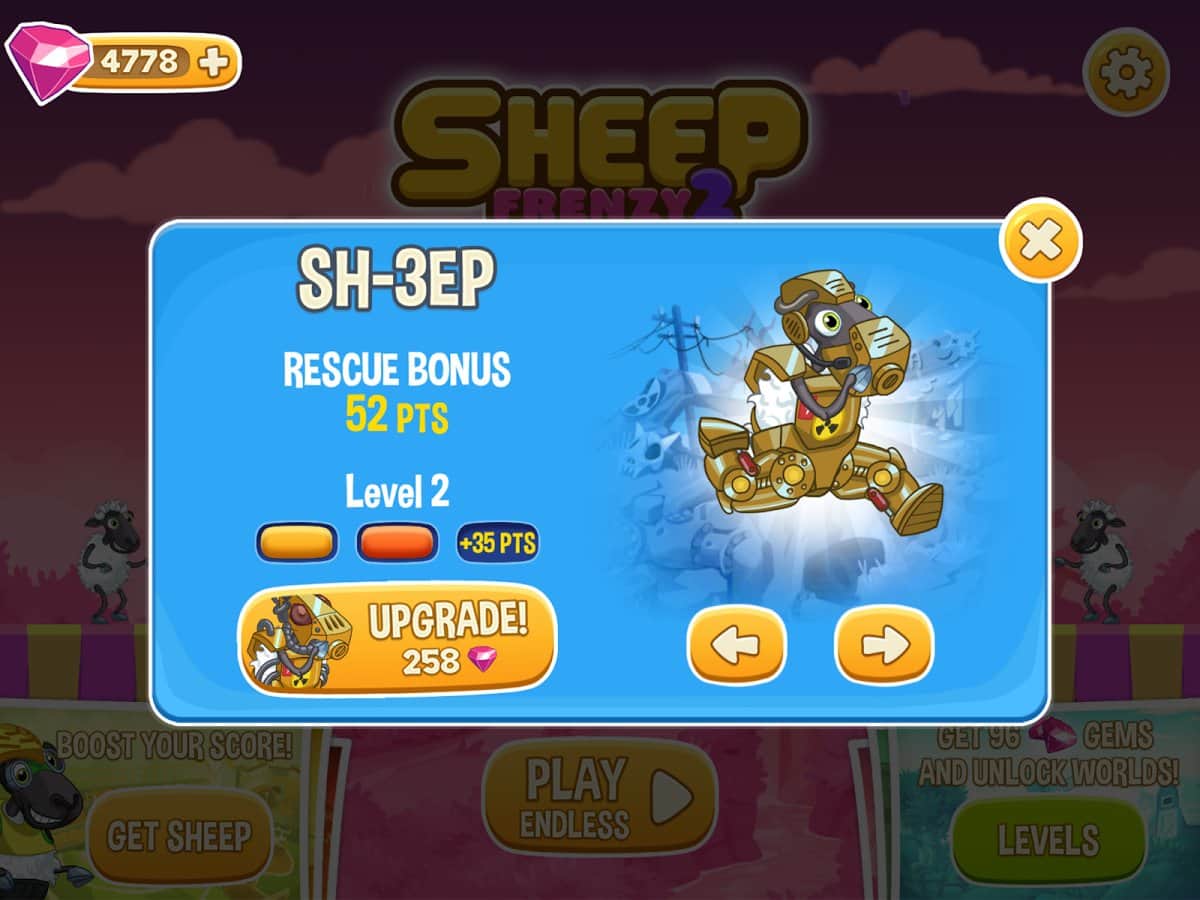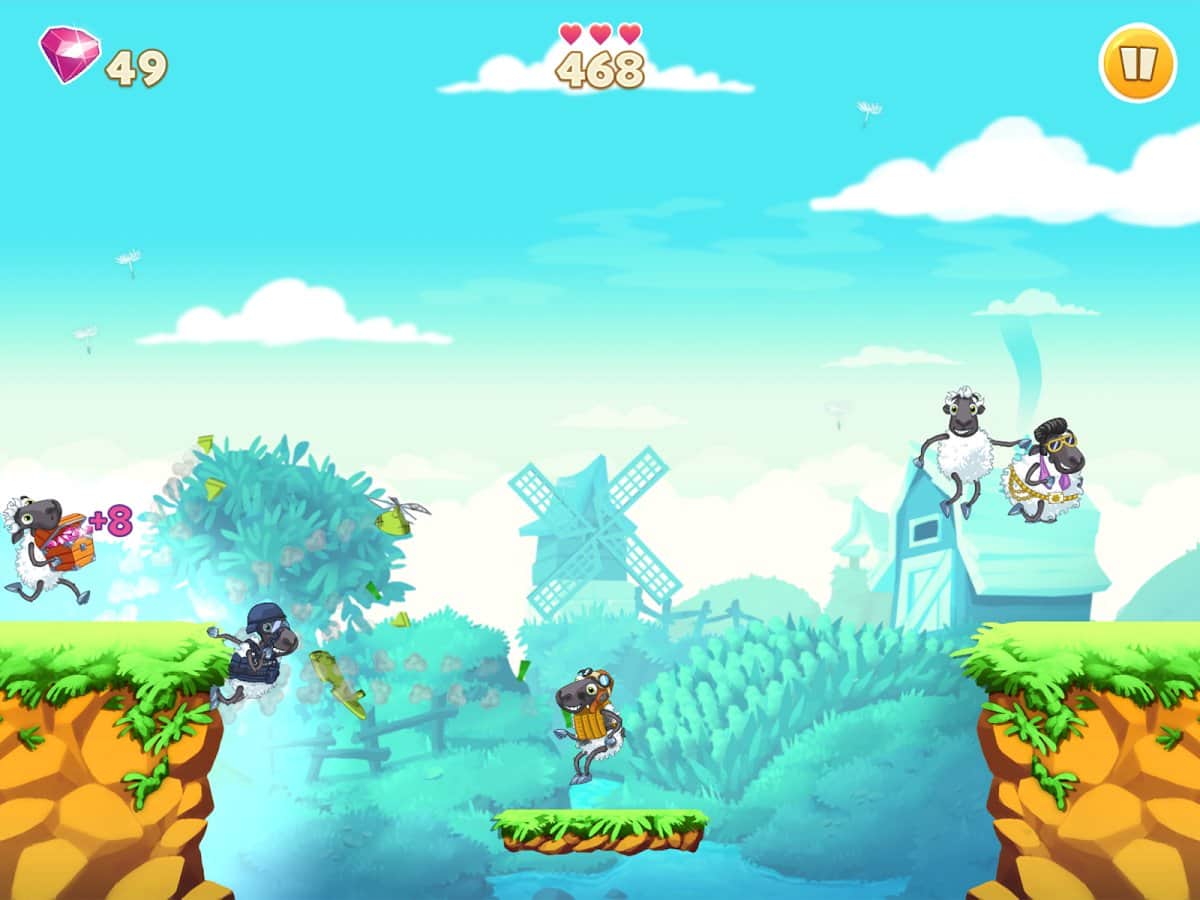 Sheep Frenzy 2 – un juego en Android donde ayudarás a las ovejas a no caer en el abismo. En este juego, tu tarea principal será atrapar ovejas usando una plataforma especial. Muévela de un lado a otro y atrapa las ovejas locas que saltan y caen en la carretera. Tu tarea no será fácil, porque tendrás que atrapar a varias ovejas, que saltarán desde diferentes lados. Atrapa todas las ovejas y desbloquea nuevos niveles que te deleitarán con nuevos corderos y complejidad. Viaja a través de diferentes mundos y disfruta de los hermosos gráficos y la variedad de ovejas.