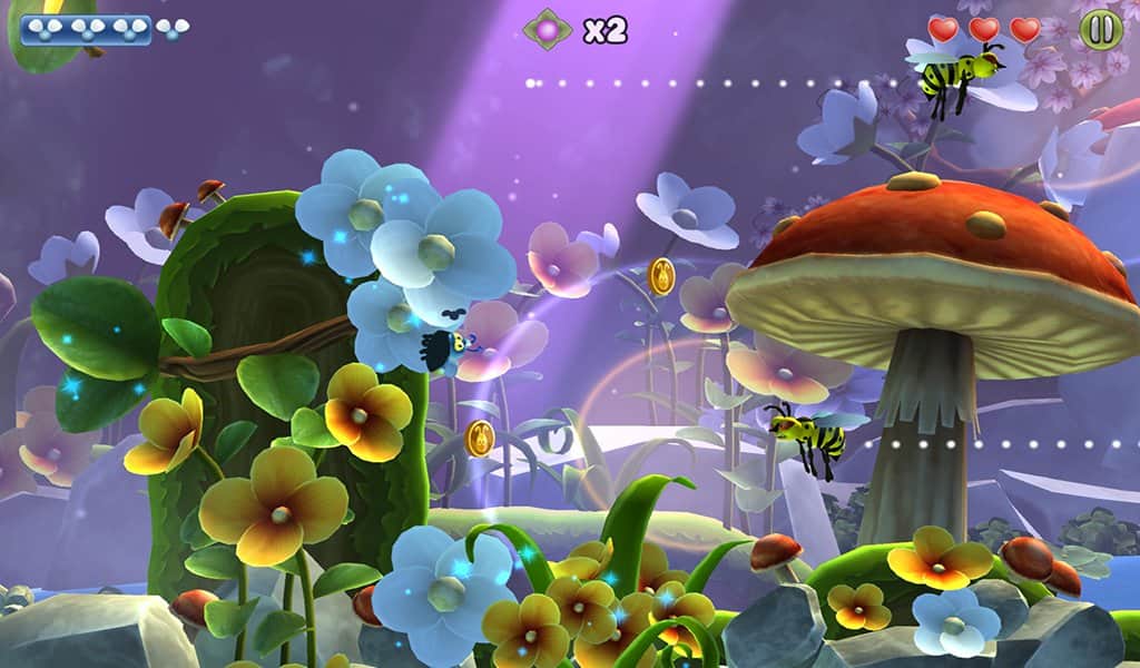 Shiny The Firefly - ¡un juego encantador en Android que te llevará al fabuloso y floral mundo! Juegas como una pequeña luciérnaga, tienes que encontrar a sus hijos, pero no es tan simple. Te enfrentarás a mosquitos, sapos, avispas y otras criaturas.