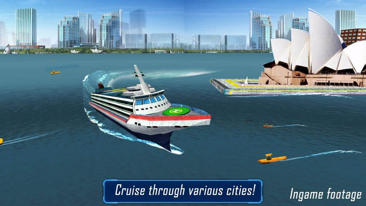 2016 Simulador de Barcos – simulador para Android, donde tomas el control de un crucero. En este juego podrás ser el capitán de un barco de pasajeros que tiene la misión de navegar por las vastas extensiones del océano. Viaja por las aguas marinas de varios países y transporta pasajeros de un punto a otro del planeta. Mueve cuidadosamente el crucero hacia adelante y observa todo lo que sucede detrás, evitando colisiones con numerosos obstáculos, enormes tiburones y icebergs. Visita los 10 puertos que se muestran en este juego y disfruta de un agradable tiempo de ocio.