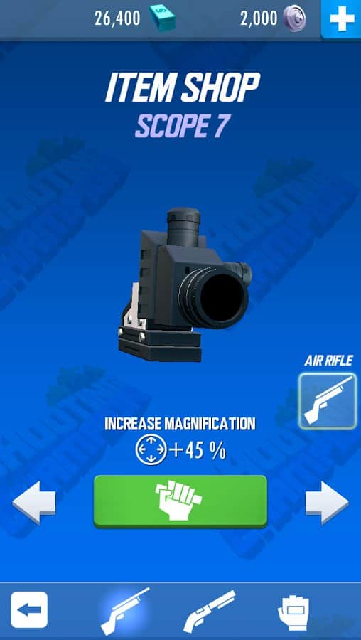 Tiro Campeón – un juego en Android donde tomas el control de tu rifle de aire y disparas a los objetivos. En este juego participas en el famoso campeonato de tiro que se celebra en todo el mundo y ocuparás los primeros lugares en la tabla de posiciones. Conviértete en el mejor en este juego y compite con jugadores de todo el mundo disfrutando de un tiro de rifle realista. El juego también te complacerá con numerosos modos de juego, medallas de oro y peleas aleatorias.
