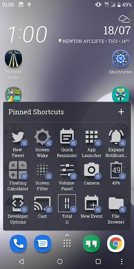 Shortcutter Configuraciones Rápidas - esta aplicación está hecha para aquellos que no tienen suficientes paneles estándar en su smartphone. Es una especie de widget de escritorio en el que puedes presionar casi cualquier botón para acceso rápido. El tamaño del widget y dónde estará es decisión tuya, al igual que un montón de otras configuraciones. Algunas configuraciones requieren acceso root, pero para la mayoría de ellas, no se requieren derechos. En general, la aplicación es muy simple y versátil.