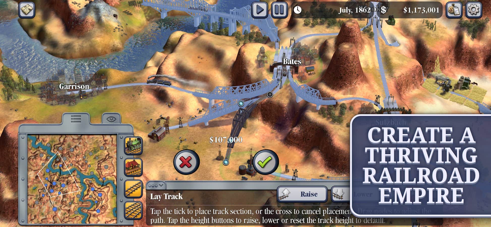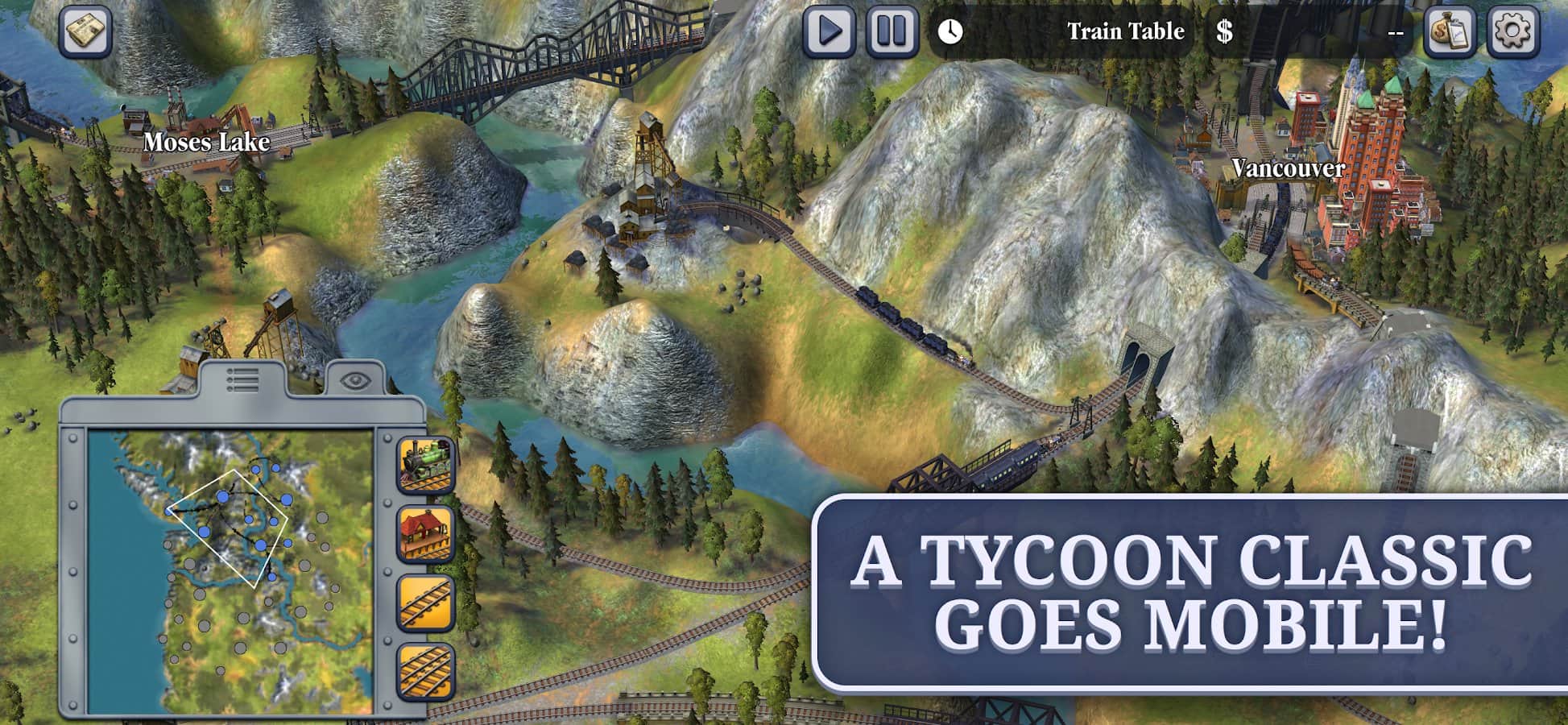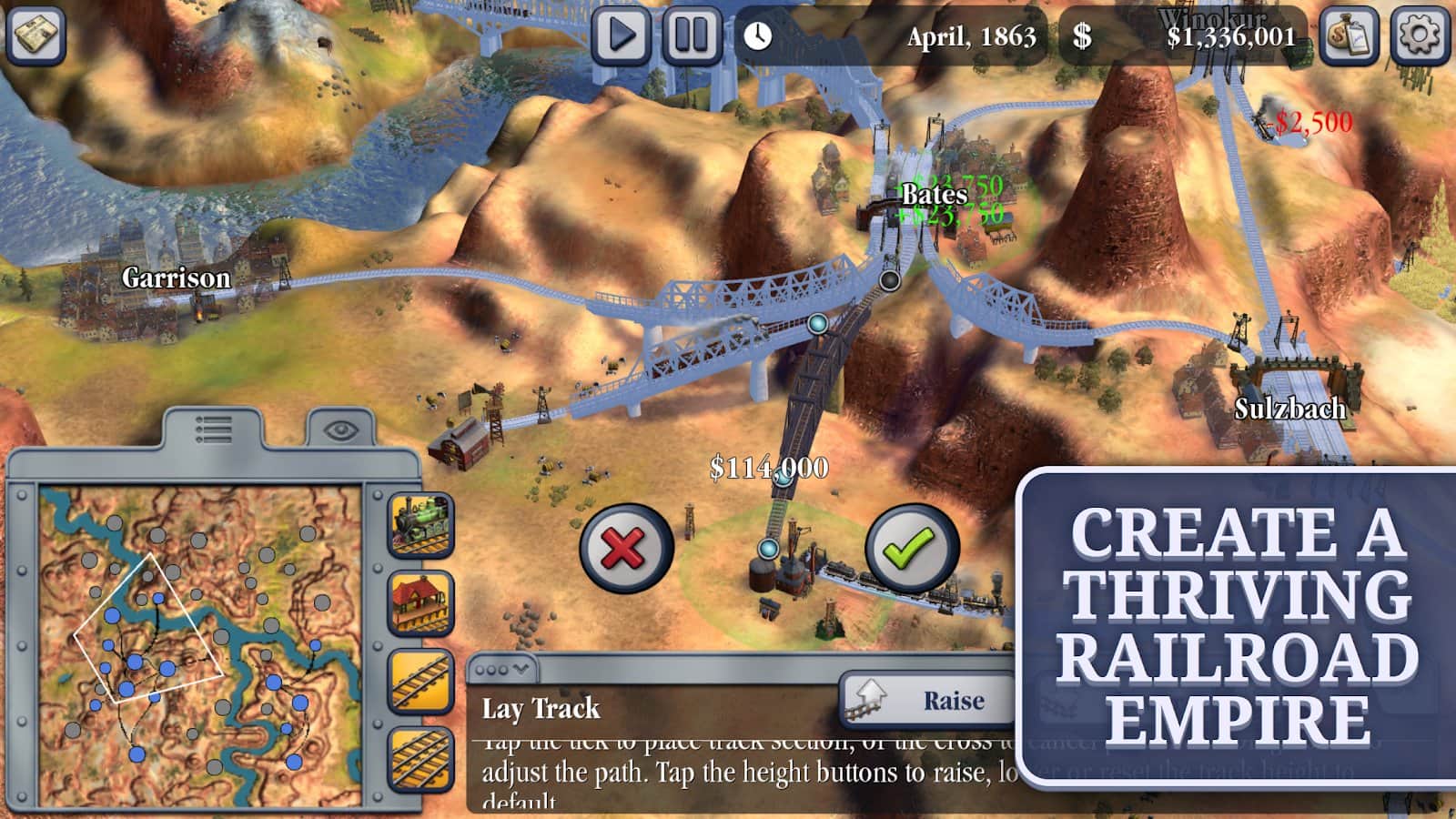 ¡Sid Meier's Railroads! - Crea y gestiona independientemente imperios ferroviarios diseñando nuevas rutas, construyendo estaciones, comprando y mejorando trenes, así como gestionando negocios y compitiendo con otros jugadores! Optimiza tus rutas para entregar carga más rápido y a un menor costo, y conviértete en el magnate ferroviario más exitoso del mundo. El juego tiene varios niveles de dificultad, así como la capacidad de jugar con amigos en modo multijugador. Viaja a través de toda una época, comenzando con las primeras locomotoras de vapor y terminando con trenes modernos de alta velocidad.