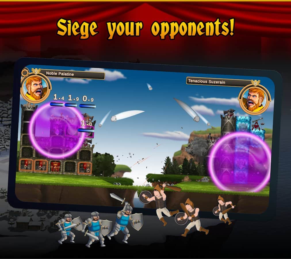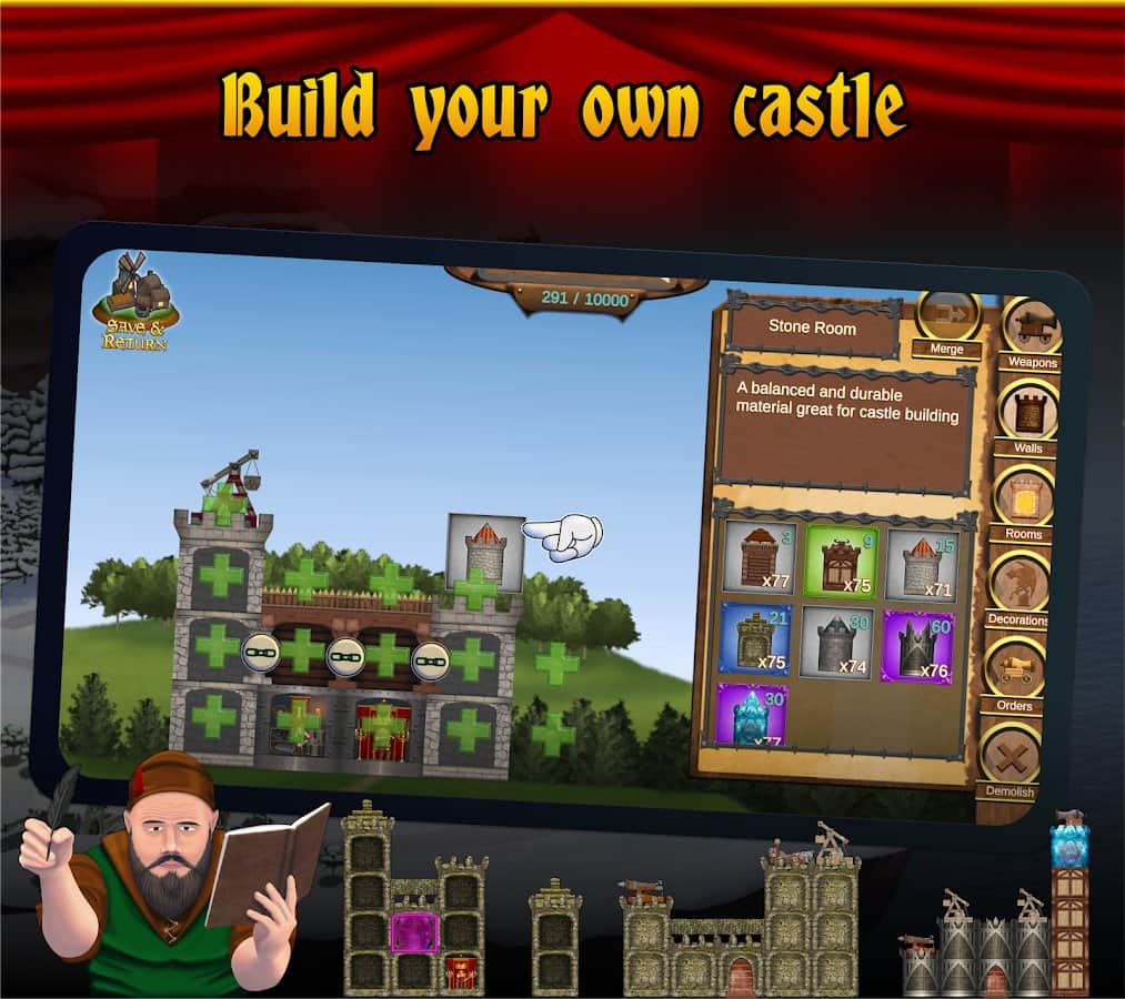 Un juego de asedio de castillos y física relajante en el que tienes que construir tu propio castillo, elegir el tamaño y diseño, el número de habitaciones y muchos otros criterios, crear un ejército poderoso y abrir el ala de cañones para tener el territorio protegido. Utiliza armas como espadas, catapultas, proyectiles de piedra y muchas más. Obtén recompensas por batallas épicas y poderosas, recoge trofeos y controla la isla. Lleva a cabo políticas comerciales y atrae inmigrantes.
