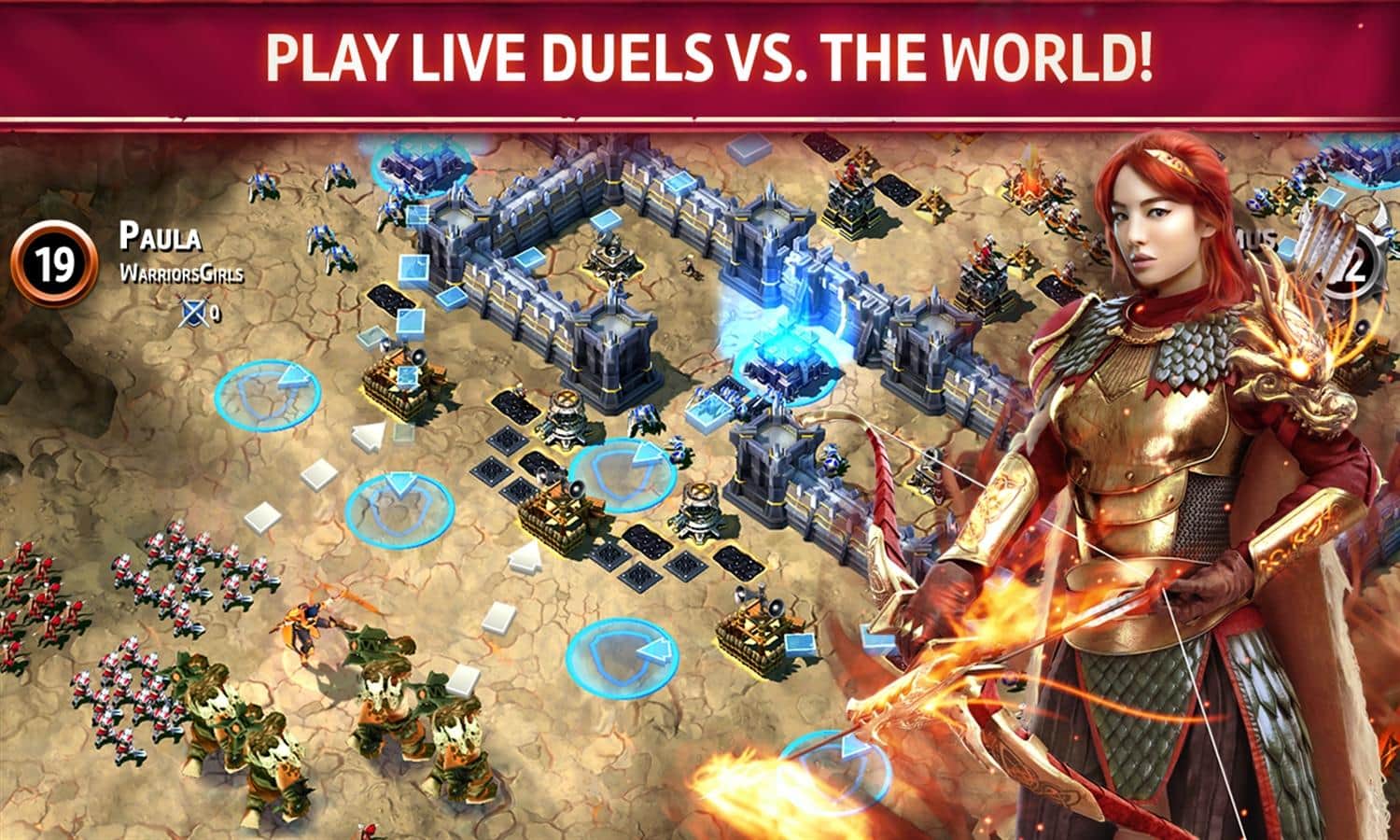 Versus – emocionantes batallas épicas te esperan en este nuevo fascinante juego del famoso estudio Gameloft. En este juego probarás tus habilidades como estratega, constructor y guerrero. De un solo golpe o abusando de las puertas del enemigo, destruye todas sus defensas y torres, y no dejes nada atrás excepto escombros. En el juego viajarás a un mundo donde todas las guerras se libran por un solo propósito: ganar la corona y el poder en el mundo. Desafía a millones de jugadores en todo el mundo y con regular precisión derrota con la ayuda de tus fuerzas, el ejército de monstruos y la magia de su reino.