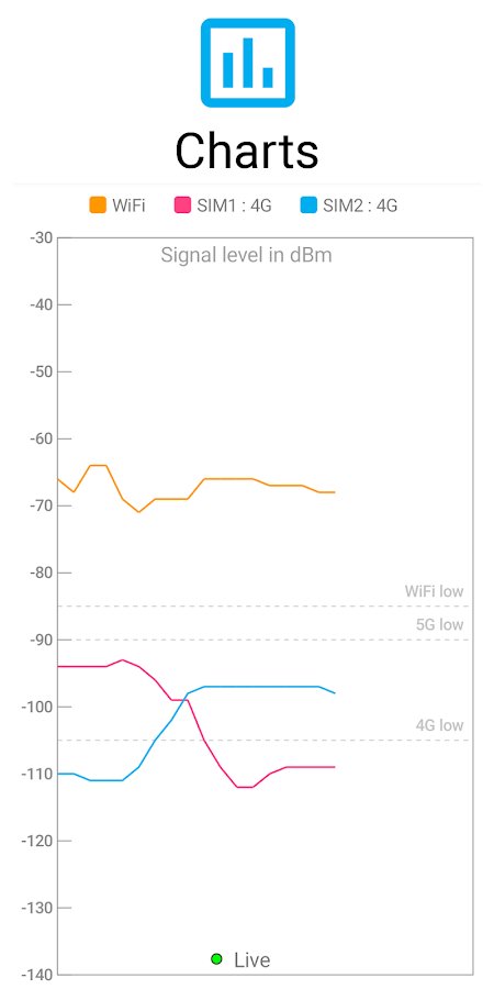 La Fuerza de la Señal - la versión premium es una aplicación muy útil que te permitirá conocer la señal de cualquier red como Wi-Fi e Internet móvil. En este caso, podrás medir la potencia de la señal según sea necesario, crear un widget activo en la pantalla y monitorear activamente tus redes. Los diversos tipos e interfaces de aplicación te permitirán elegir la mejor y más conveniente aplicación. Además, Fuerza de la Señal te permite conocer la ubicación de las torres.