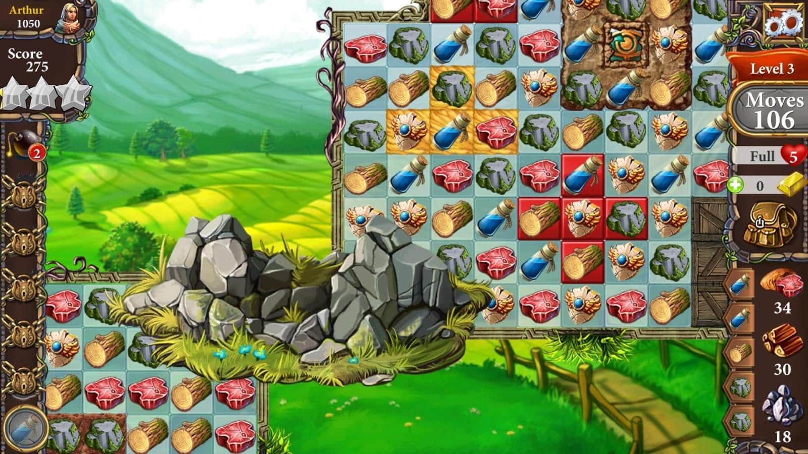 Cuento de Plata – un emocionante juego del género tres en raya en Android, donde salvarás la vida del rey. Embárcate en un viaje fantástico donde tendrás que igualar tres o más objetos en fila para completar emocionantes misiones y crear los objetos que necesitas. Resuelve desafiantes rompecabezas y colecciona artefactos raros, explora numerosos niveles y recolecta los objetos necesarios para superar los obstáculos en el camino. Encuentra todas las llaves y abre todos los cofres del tesoro y salva la vida del rey. Crea los objetos que necesitas en una forja y gana recompensas.