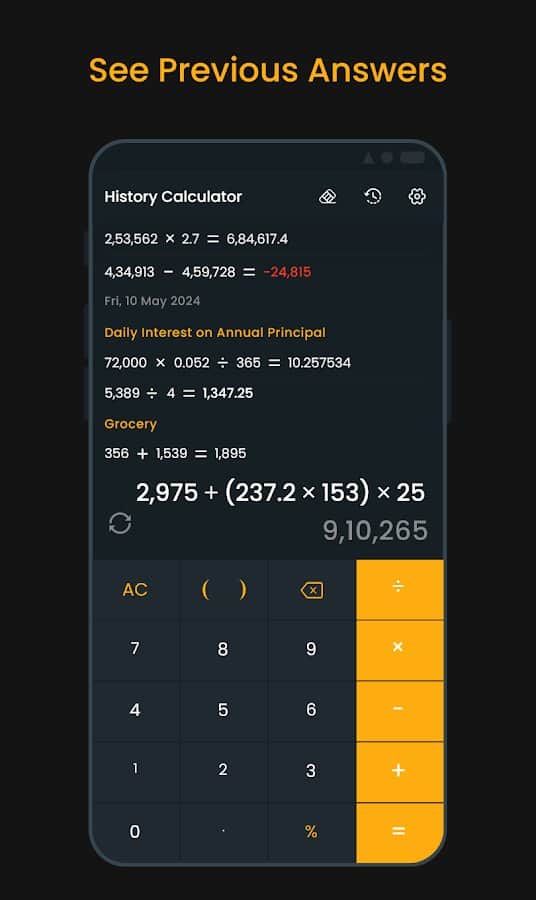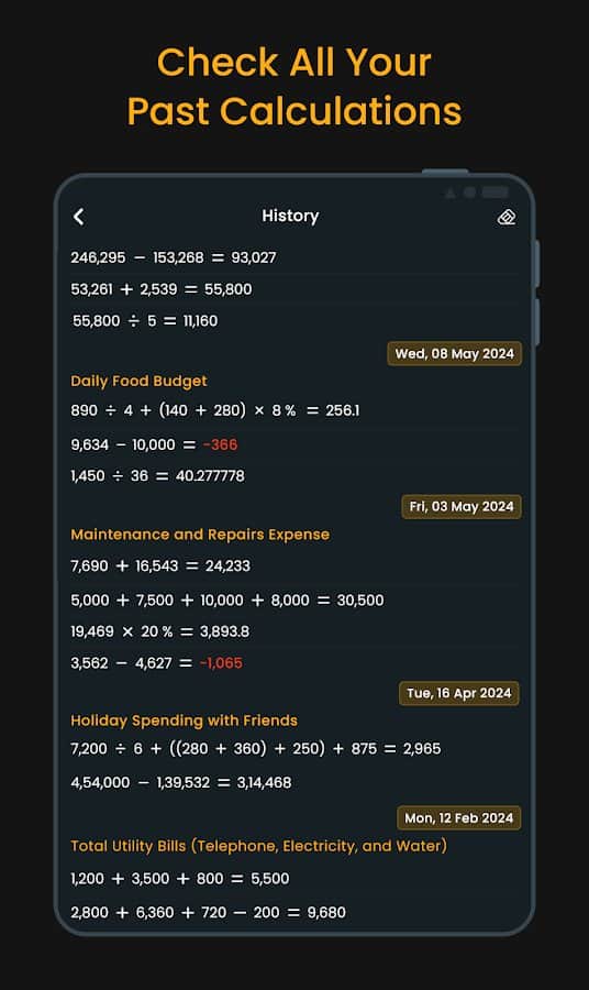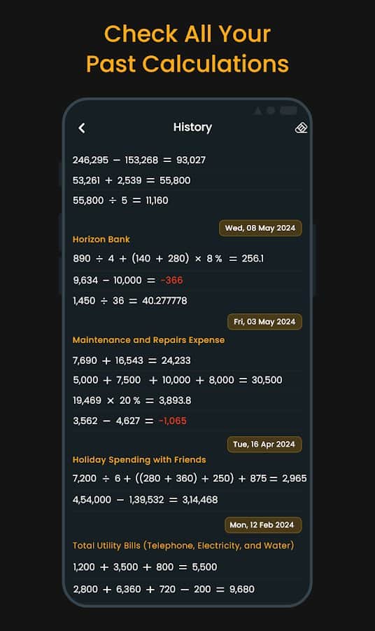 Revisa fácilmente todos tus cálculos anteriores como si estuvieras desplazándote por una línea de tiempo.