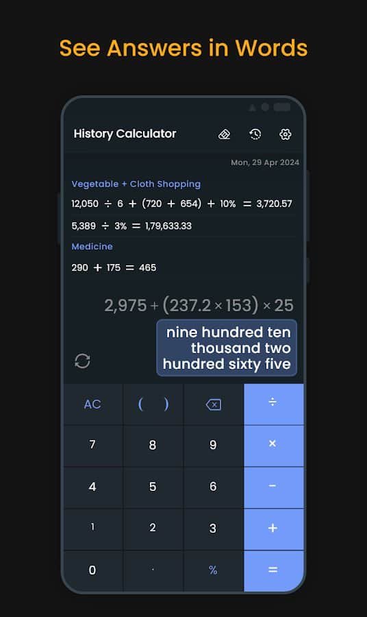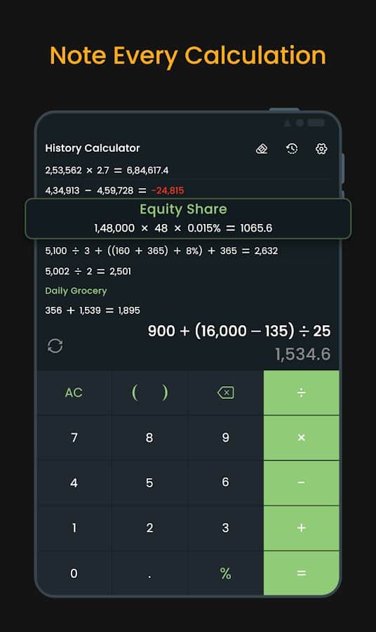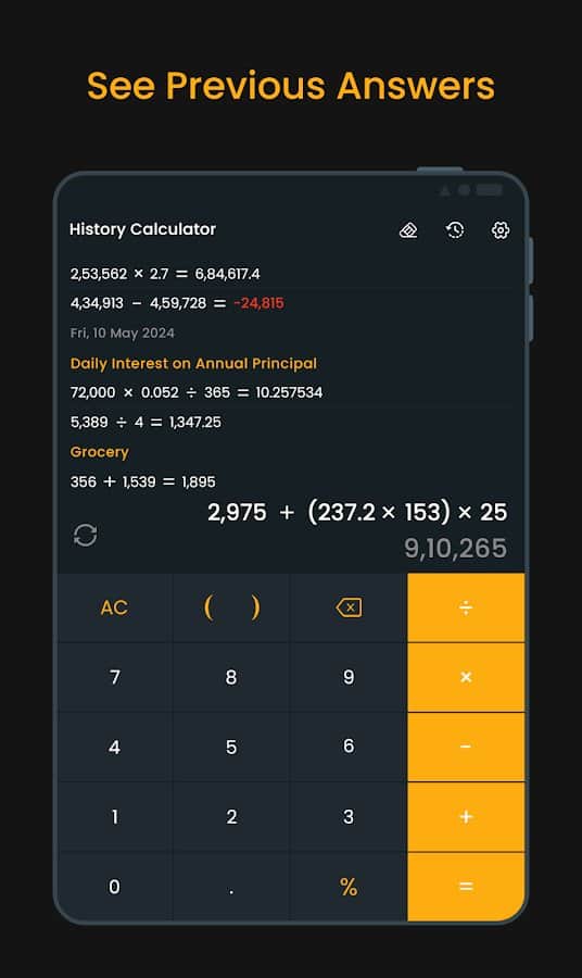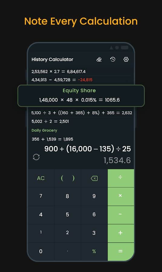 Tu historial de cálculos se guarda sin límites, asegurando un almacenamiento seguro de información importante.
