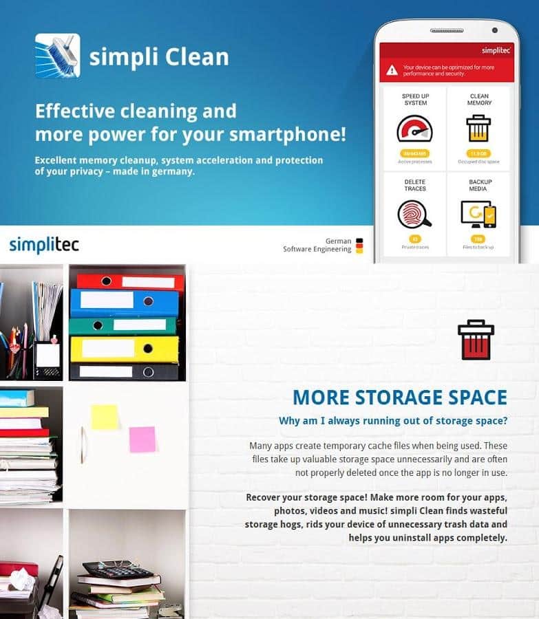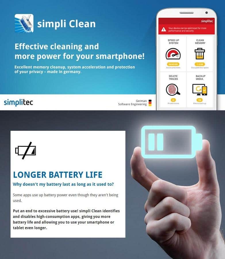 simpli Clean (Acelerador de Velocidad) - Mantén tu smartphone limpio con solo una aplicación simple. Es una aplicación versátil que no solo te ayuda a liberar espacio, sino que también acelerará el rendimiento de tu dispositivo. Usando las funciones de optimización, con solo un clic podrás acelerar una sola aplicación con los procesos de otras. Y además de todo esto, también ahorrarás la carga de tu batería, ya que cuenta con esta función. Al desactivar los procesos de fondo que no son necesarios, optimizas el rendimiento de la batería.