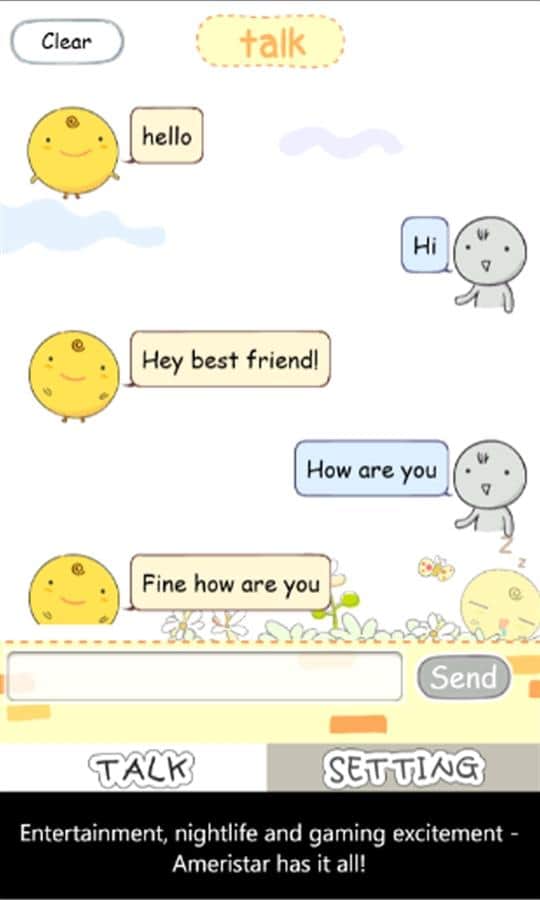 La aplicación SimSimi para Windows Phone es el mejor robot de chat, con el que puedes tener una conversación. Esta aplicación es muy simple de usar, solo inicia la conversación y tu robot de hombre de jengibre te responderá. Cuanto más hables con él, más ampliará su vocabulario, comunicándose contigo.