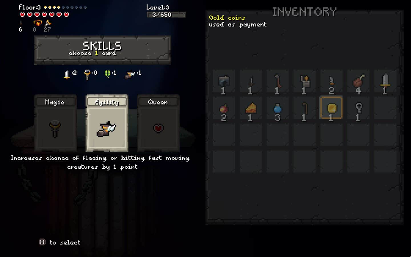 el Sir Cuestionario – juego de rol, donde exploras mazmorras llenas de botín, enemigos y secretos. Toma control de un héroe valiente y guíalo a través de muchas mazmorras recolectando armas y objetos y luchando contra enemigos. Cuanto más profundo vayas en la mazmorras, más podrás mejorar a tu personaje y más fuertes y resistentes serán tus enemigos. Obtén recompensas y bonificaciones valiosas y logra excelentes resultados en el juego. Busca las debilidades de los monstruos, desbloquea los secretos de varios objetos y disfruta de los niveles generados aleatoriamente.