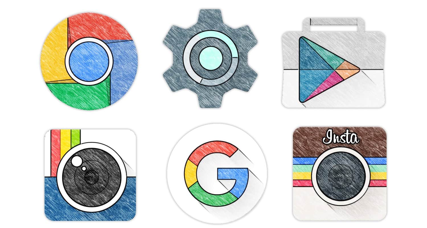 Sketchy - Paquete de iconos - Conjunto de iconos coloridos para tu escritorio. Todos son muy únicos, porque parecen dibujados con un lápiz. Se ven muy bonitos y coloridos, con ellos siempre puedes decorar la pantalla de tu smartphone con nuevos colores. Aquí puedes encontrar el icono para cualquier aplicación, incluyendo las no estándar. Usa kits ya preparados o crea el tuyo propio reemplazando los iconos uno por uno.