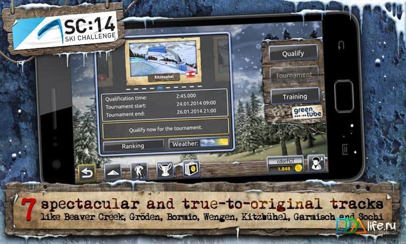 Ski Challenge 14 – dinámicas carreras de esquí en Android con un gran descenso. Obtén tu dosis de adrenalina, deslizándote a una velocidad salvaje de hasta 130 km/h en esquís por la pendiente.