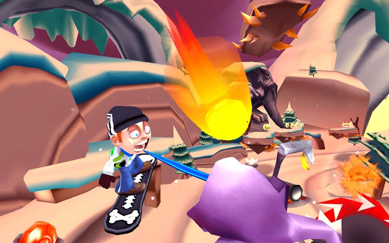 Juego de Skiing Fred para Android en el que deslizas sobre una tabla de snowboard a toda velocidad mientras recoges monedas y derribas todo lo que se cruza en tu camino. ¡Aceleración turbo, acrobacias impresionantes, un mar de adrenalina y diversión te esperan!