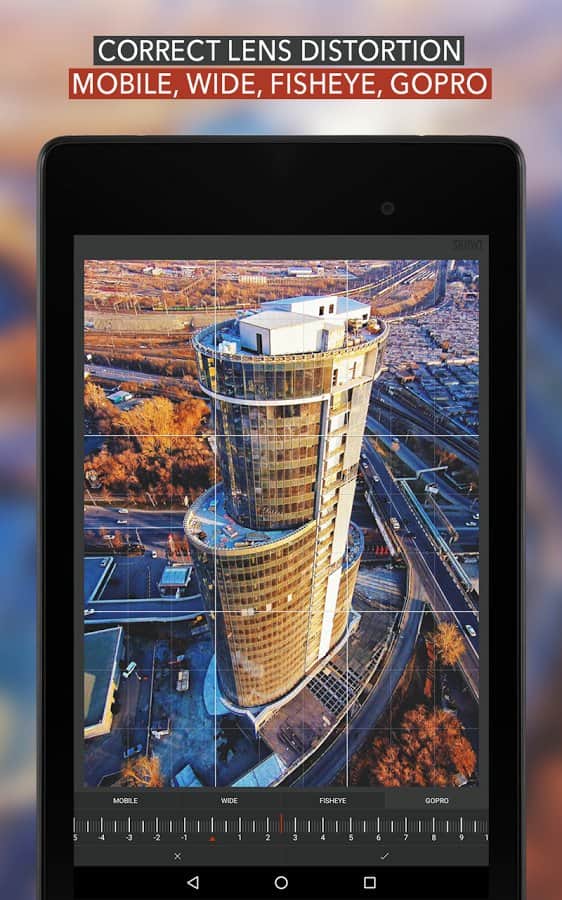 Si piensas que no hay sorpresas por parte de los editores, es posible que desees prestar atención a esta aplicación. No hay herramientas de edición habituales, pero hay características mucho más avanzadas. Por ejemplo, es posible corregir la perspectiva y deshacerse de las líneas convergentes, jugar con la composición de una foto — ofrece muchas formas interesantes, o agregar viñetas. Gracias al soporte EXIF, el programa puede obtener la información más completa posible sobre cualquier imagen. La galería integrada facilita la vista previa de las imágenes, y la capacidad de ocultar carpetas innecesarias acelera la búsqueda de la foto deseada. La interfaz está casi completamente llena de iconos claros para todos, por lo que no es difícil manejar el programa.