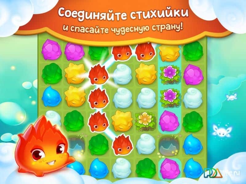 Charms Sky – el juego te lleva a un mundo de hadas llamado Sky Charms. Estas fabulosas largas áreas viven en plena idilio, pero ahora las islas voladoras están en peligro. Pueden caer y para mantenerlas en el cielo, debes encontrar los cristales y reunir los diferentes elementos. Solo después de esto, el agua mágica fluirá hacia las islas. Así que no puedes organizarlo todo solo, solo bajo tu estricta guía. Puedes organizar una misión para rescatar las islas. En su esencia, el juego es un juego de arcade del género "tres en raya", los fanáticos del género lo apreciarán.