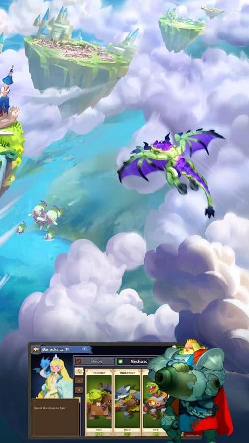 Reinos del Cielo - Asedio de Castillos - estrategia militar - económica en la que debes liderar una operación a gran escala para liberar tu Reino de los insidiosos invasores, se debe recordar que la mayoría de los eventos ocurrirán en todo tipo de islas voladoras. El algoritmo general del juego es el habitual para el género, el estilo, la originalidad de los mismos Reinos del Cielo - Asedio de Castillos para Android crea una atmósfera de fantasía única, gráficos impresionantes, diversos personajes y cientos de tareas y misiones.