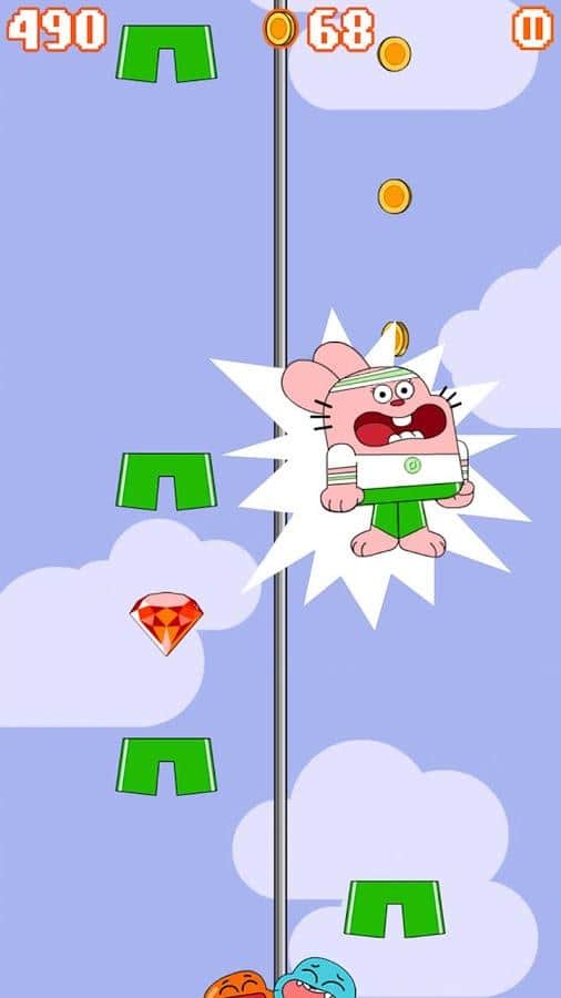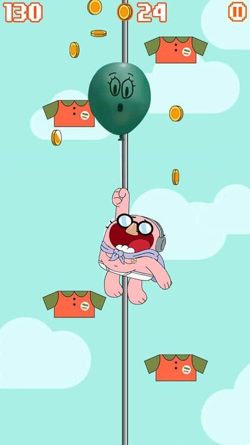 "El asombroso mundo de Gumball" es una serie animada estadounidense producida por el canal de televisión Cartoon Network, cuyo centro de la trama es la familia Watterson, la familia del héroe. Basada en la serie animada, el estudio Cartoon Network ha lanzado una serie de juegos y cada uno siempre ha disfrutado de una popularidad envidiable. Sky Streaker - Gumball - continuación de la serie de juegos sobre un gatito juguetón. Esta vez, en el centro de la trama está Richard Watterson, quien decidió establecer un récord mundial por andar sin pantalones, lo cual, por supuesto, no es muy agradable para todos los miembros de la familia, así que el récord puede interferir. Y así la jugabilidad es bastante clara, controlando a Richard, tu tarea es intentar escalar lo más alto posible, mientras evitas "colisiones" con sus pantalones y escapas de Gumball. A lo largo del camino, puedes recoger monedas que luego se usarán para comprar mejoras y bonificaciones.