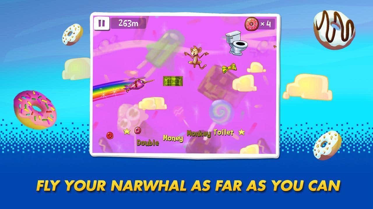 Ballena del cielo - un fascinante arcade en Android donde controlas un narval y vuelas por el cielo. ¿Cómo puedes volar más alto y más lejos y permanecer en el aire el mayor tiempo posible? En este juego usarás varios elementos que te permitirán volar más lejos. Colecciona combos y vuela hacia el espacio, y si consigues un traje de buceo, entonces ve a una aventura submarina. Por cierto, no olvides recoger monedas y desbloquear nuevos elementos que te permitirán volar más lejos. Colecciona donas con arcoíris y obtén superenergía.