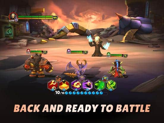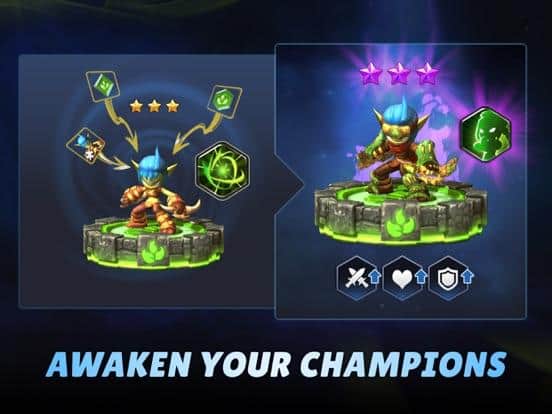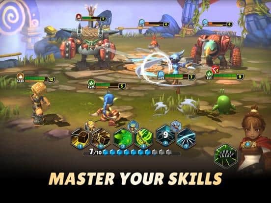 Grand Ring of Heroes es un gran RPG móvil para IOS donde construyes un equipo de skylanders. En este juego viajarás a lugares fascinantes junto a Spyro, Stealth Elf, Raptoran y muchos otros skylanders. Crea tu equipo invencible y desafía a jugadores experimentados de todo el mundo. Cada skylander en el juego tiene sus propias habilidades y apariencia únicas. Coloca las runas de tus héroes de 10 tipos diferentes y aumenta su poder. Anima a los skylanders y villanos a luchar de tu lado. Elige el momento adecuado y utiliza el maná para atacar con éxito a los enemigos.