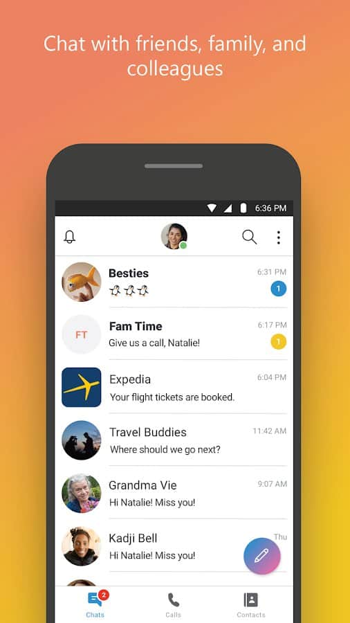Skype para Android – Chatea con amigos en modo de video en línea en todo el mundo, si tienes una red inalámbrica Wi-Fi, las llamadas de Skype se vuelven prácticamente gratuitas. Cómo llamar a teléfonos móviles y fijos regulares. También puedes enviar mensajes instantáneos, fotos y videos de forma gratuita. Soporta Wi-Fi, 3G y EDGE/GPRS. ¡Mantente en contacto con amigos dondequiera que estés o estén!
