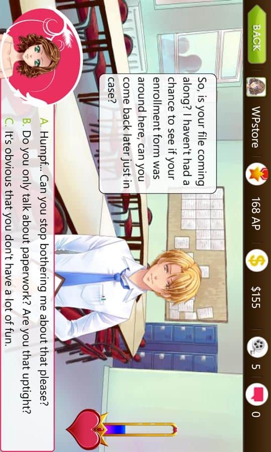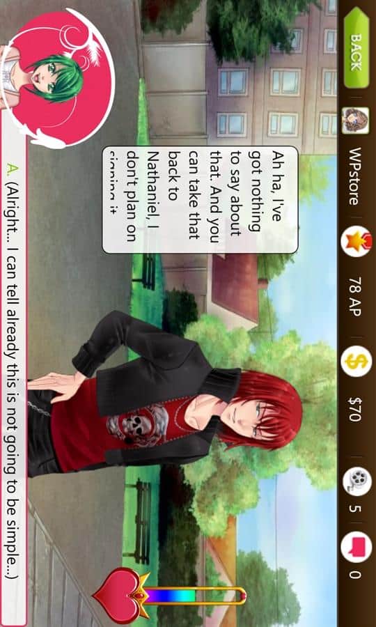 Dulce coqueteo es un juego emocionante para chicas, donde coquetearán con chicos. Es una novela virtual, donde conocerás a muchos héroes y elegirás a tu favorito. Crea tu propia historia de amor única gracias a los episodios cambiantes del juego. Elige al chico que te guste y pon mucho esfuerzo para ganar su amor y confianza. Conquista el corazón del chico y conviértete en la chica más popular de la escuela. Gracias a este juego, se te abrirá un mundo romántico lleno de paseos bajo la luna, encuentros vibrantes con muchos diálogos. Sal con diferentes chicos, ve a citas y encuentra a aquel único que conquistará tu corazón.