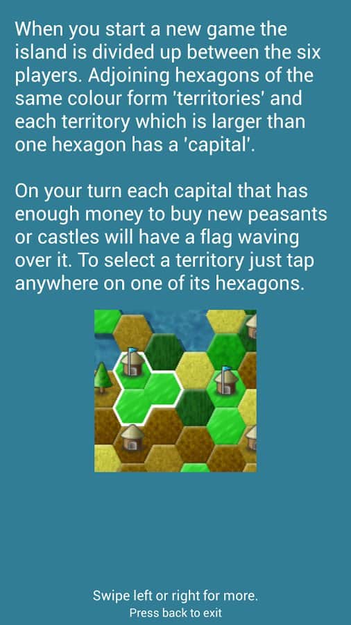 Slay es una estrategia por turnos en Android donde capturarás tierras y expandirás tu territorio. En este juego te encontrarás en una isla, donde todo su territorio está dividido entre cuatro jugadores. Cada jugador posee su parte de la isla y tu tarea será refinarlos y establecer campesinos allí. Ataca el territorio enemigo y captúralo, volviéndote más fuerte y rico. Una vez que tengas los resultados, podrás mejorar a tus campesinos y convertirlos en lanceros, caballeros y barones, pero ten cuidado, porque si creas muchos caballeros, tu tierra puede fallar. Al jugar este juego, mantén el equilibrio entre la creación de nuevos caballeros y la mejora de la tierra.