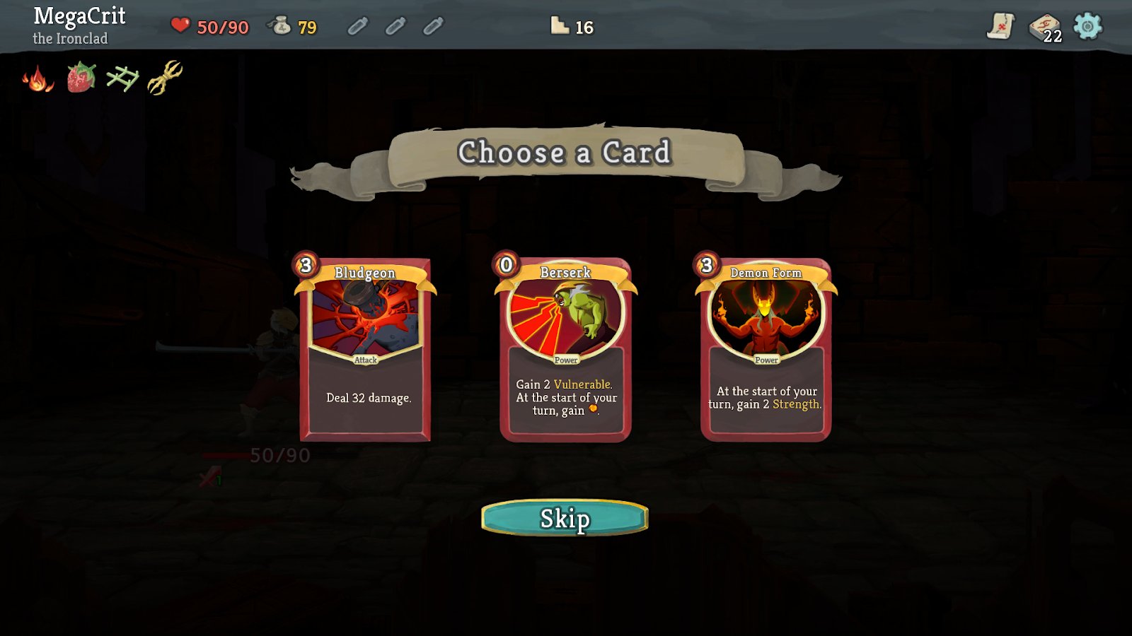 Adapta tu mazo a tu situación actual, ¡pero elige tus cartas sabiamente! Con cada intento de escalar la Spire, tendrás más y más cartas diferentes disponibles para ti. Crea combinaciones efectivas para destruir enemigos y llegar a la cima.