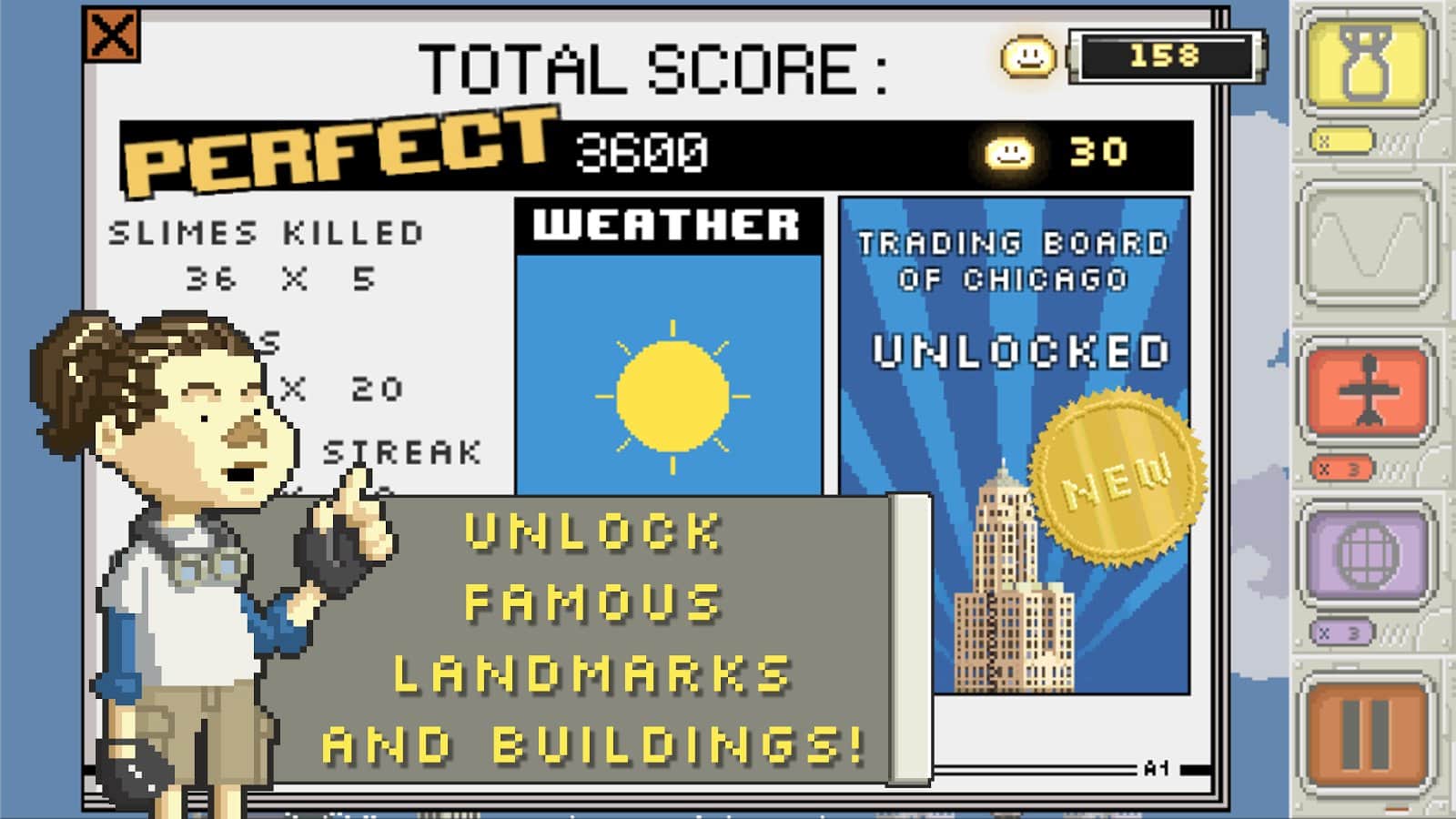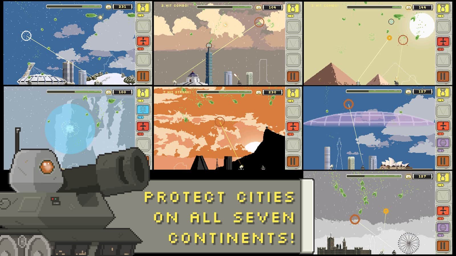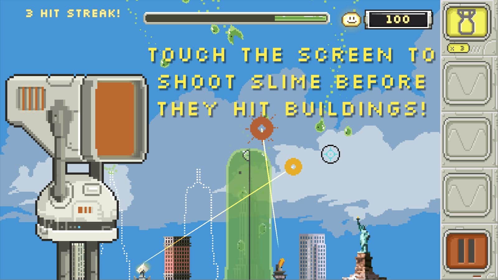 Slime-ballistic Mr. Missile - un divertido juego de píxeles donde tienes que proteger la ciudad de los malvados climov que atacaron la tierra. En un instante, enormes enjambres de climov verdes cayeron al suelo y comenzaron a devorar todo, casas, personas y más, destruyendo todo. Sin embargo, un grupo de científicos pudo contrarrestar esto con el más novedoso desarrollo de armas, logrando repeler este ataque. Y ahora es tu turno, tienes que disparar con tus armas, mientras calculas la trayectoria con anticipación y adivinas dónde estarán las babosas en unos segundos.