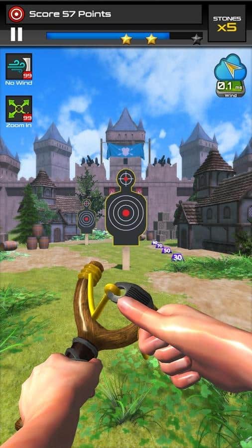 Club de Hondas - Juegos Gratis – juego deportivo para Android donde dispararás con una honda. En este juego tomarás una honda y dispararás a diferentes objetivos, acertando en el blanco. Completa emocionantes misiones y tareas por recompensas valiosas, gracias a las cuales podrás descubrir una nueva honda. Muestra toda tu precisión y exactitud para obtener tres estrellas en cada etapa. Antes de disparar con la honda, debes considerar la fuerza del viento y su dirección, y acertar en el blanco. Participa en torneos internacionales y demuestra toda tu habilidad para ganar el título.