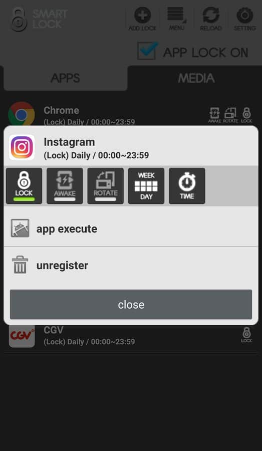 - Bloqueo de cada aplicación / archivo multimedia